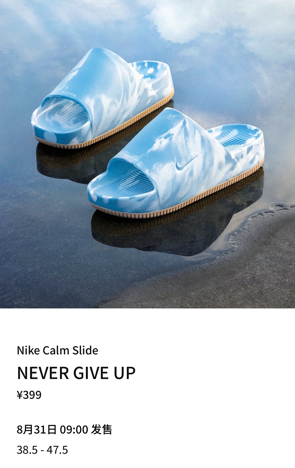 根据官方消息,这双 Nike Calm Slide “Never Give Up” 将于 XH55 店铺首发。