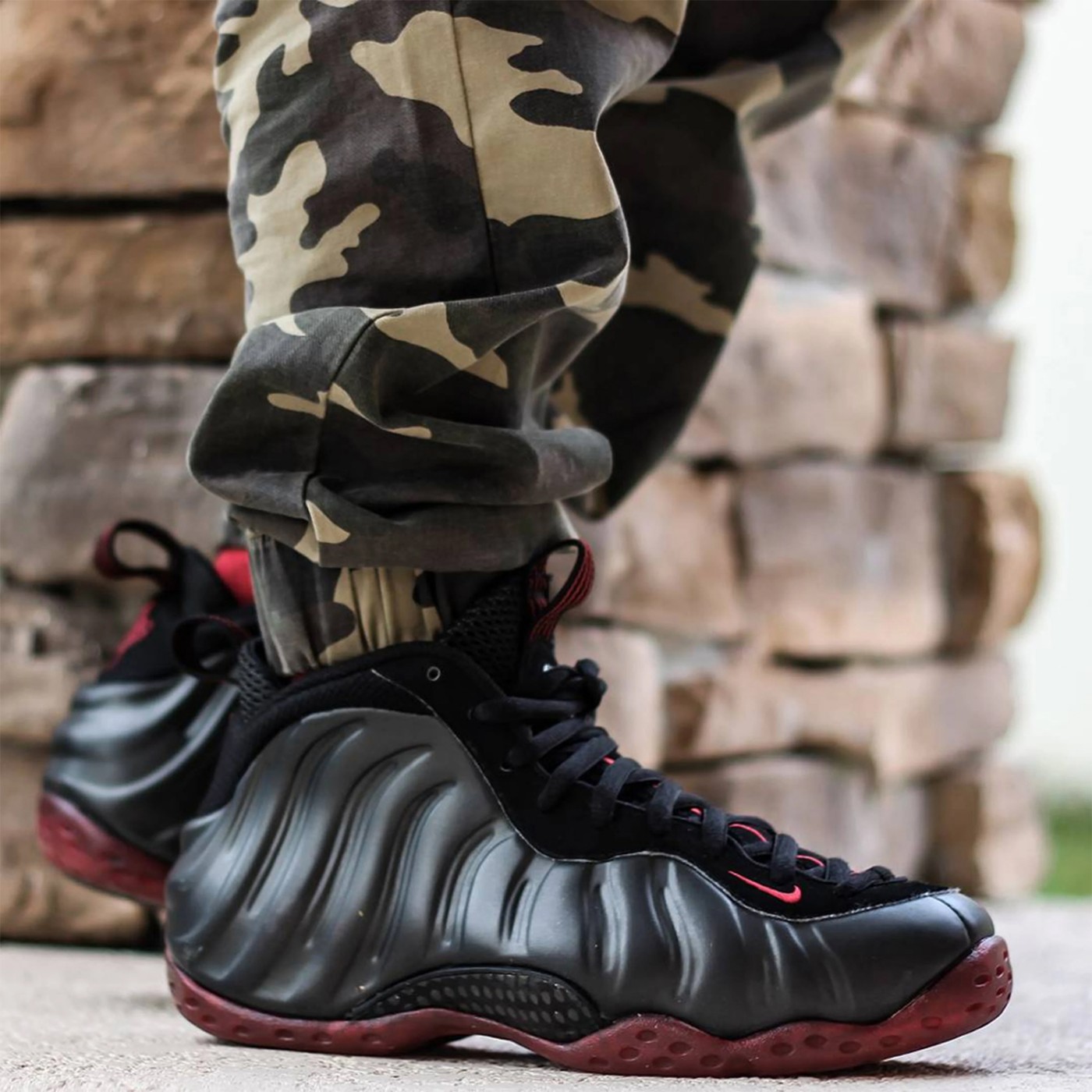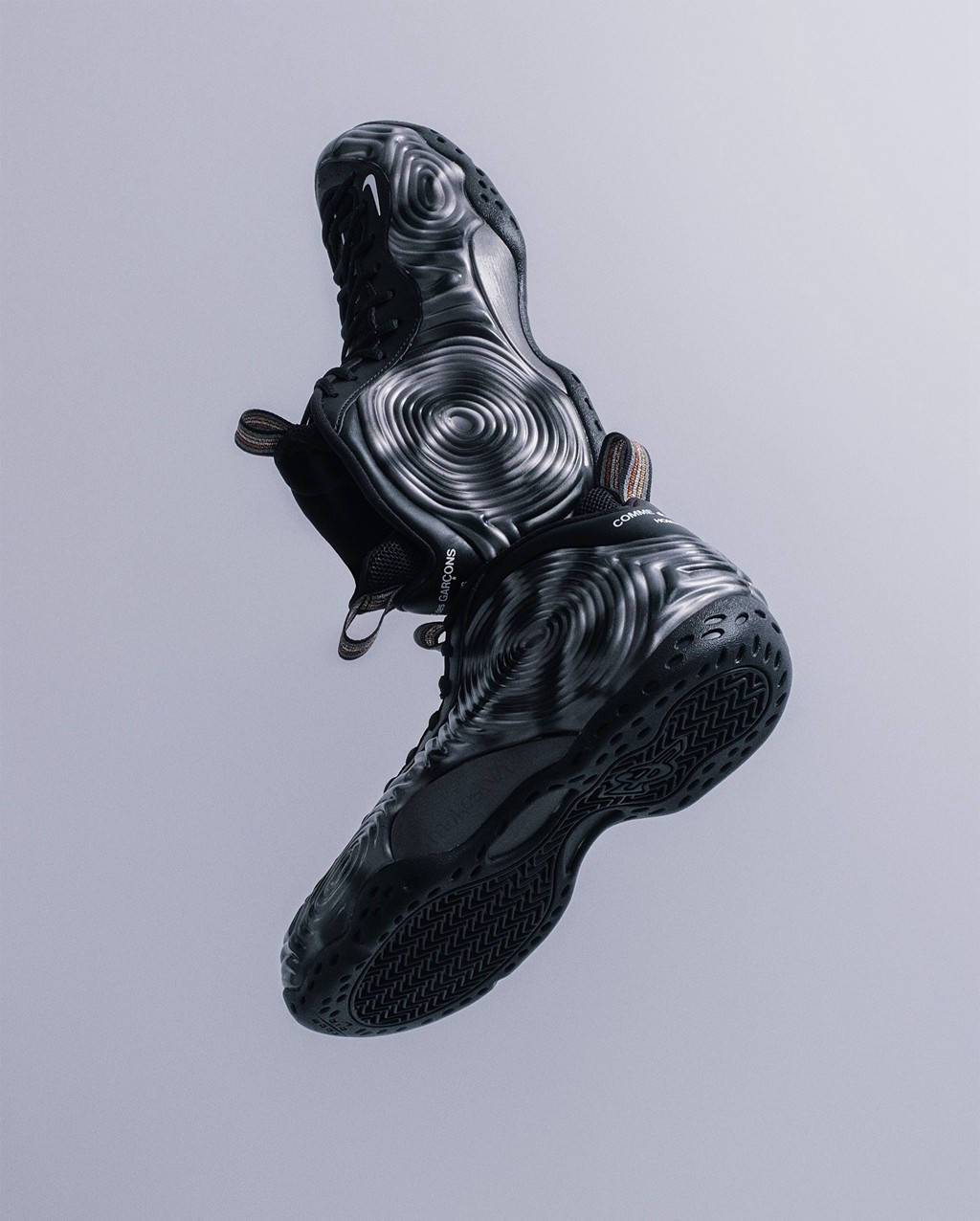 上脚后不同角度的光泽明暗变幻,完美诠释 Air Foamposite One 独有的发泡肌理。