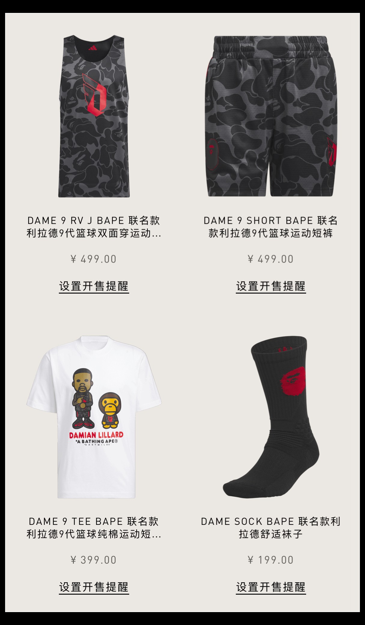 近日,全新的 BAPE® x adidas DAME 9 终于迎来了国区正式登场,除鞋款外,还有系列联名服饰扎堆来袭!