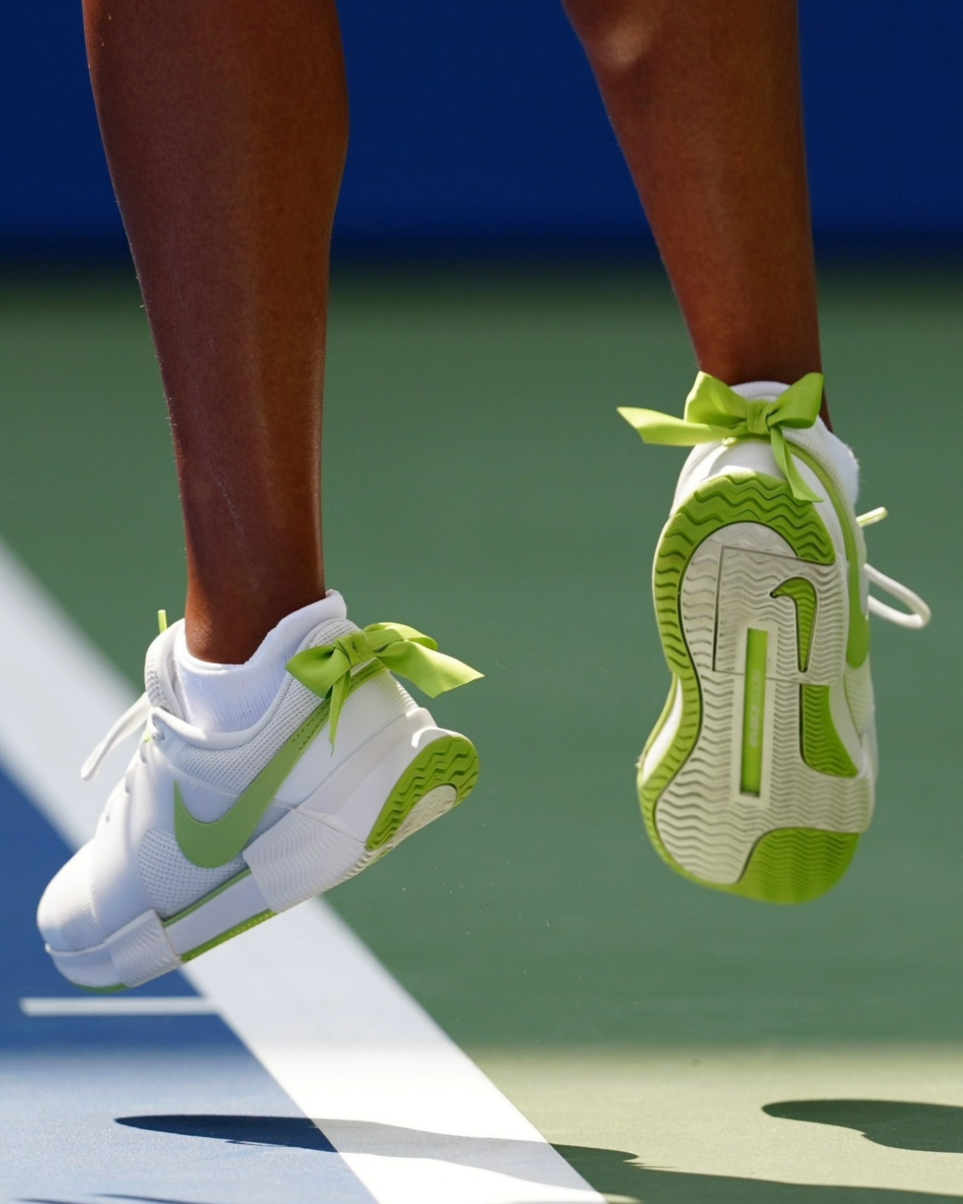 设计方面,白天场次球衣以绿色为主,夜间场次的则以黑色呈现,同时打造了饰有蝴蝶结的外套和短裙。