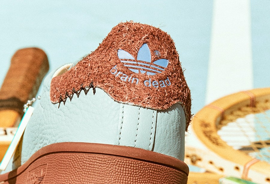 在此次合作中,Stan Smith 经过重新设计,延续经典轮廓的同时,注入了属于 Brain Dead 的特色品牌元素。