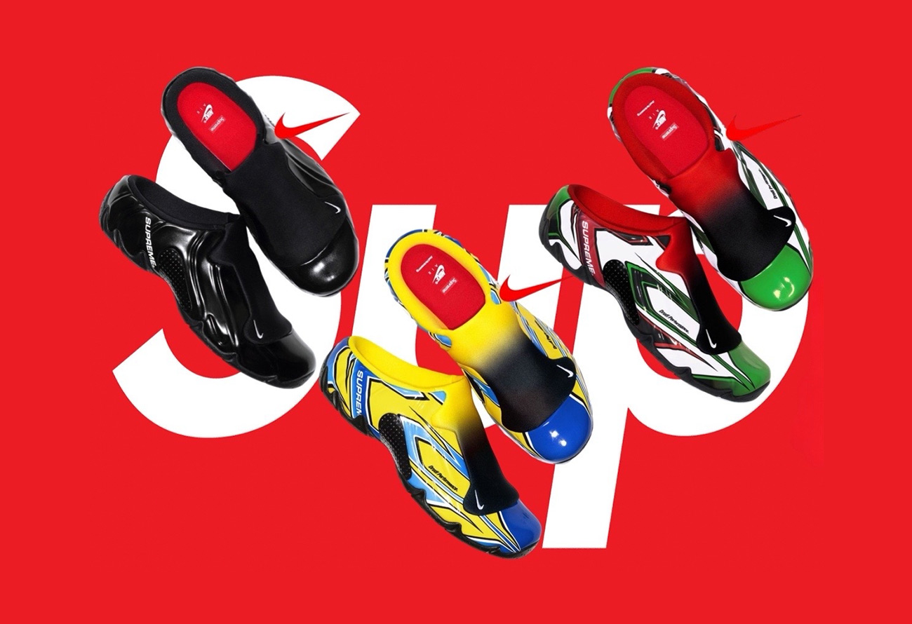 Clogposite 风拖的联名却是少见,今年恰逢 Supreme x Nike 合作再度升温,双方也基于这个经典鞋型带来 3 款不同配色。
