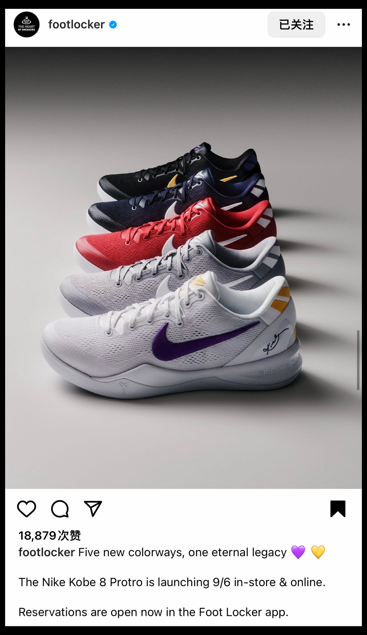而海外知名球鞋连锁店铺 Footlocker 则一口气释出 5 款配色,都定档 9 月 6 日。