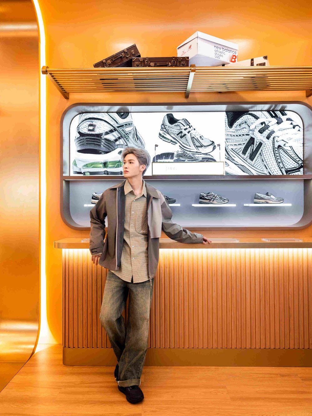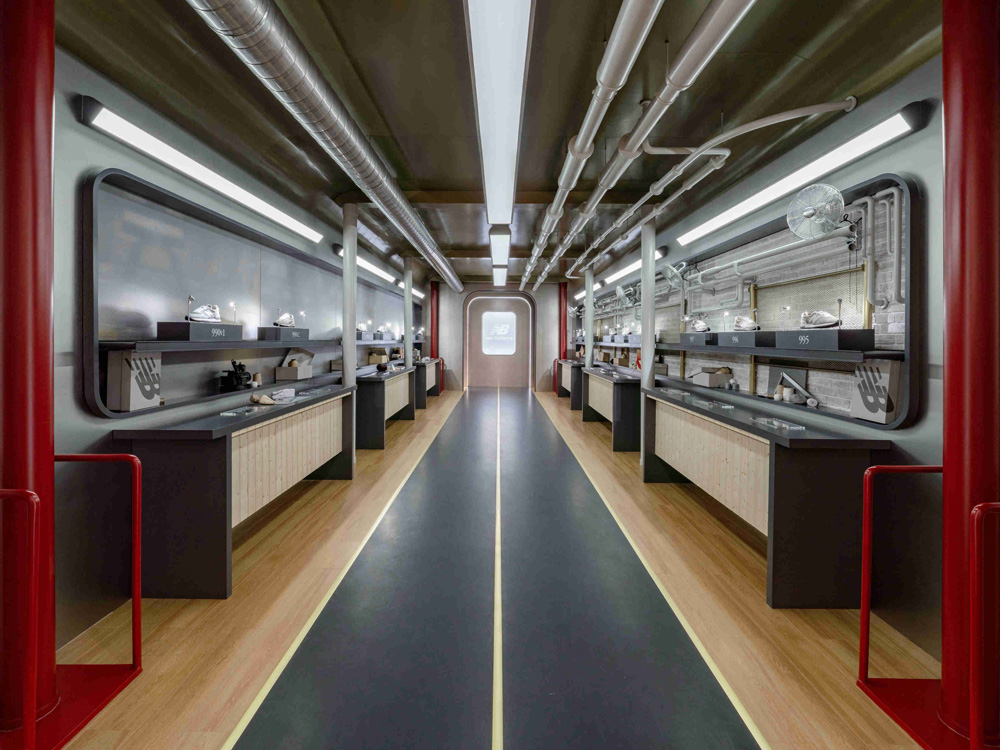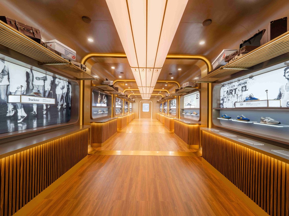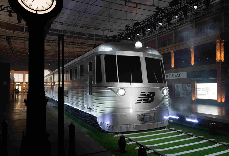 在第一列车厢中陈列着不同时代的标志性鞋款,展现 New Balance 百年来不断突破的创新格调。