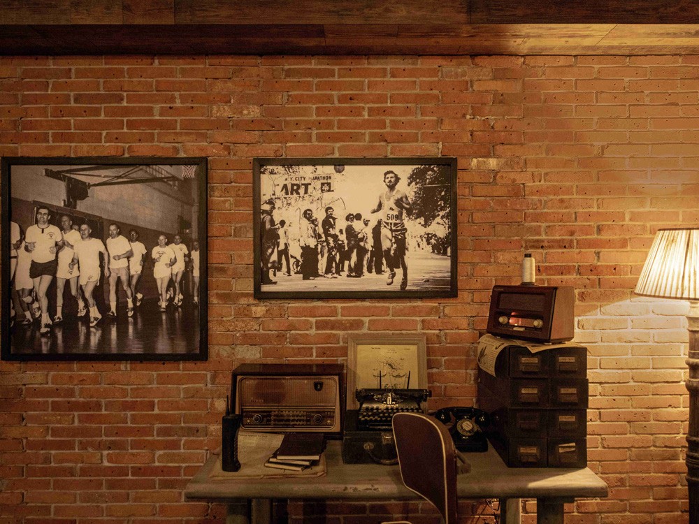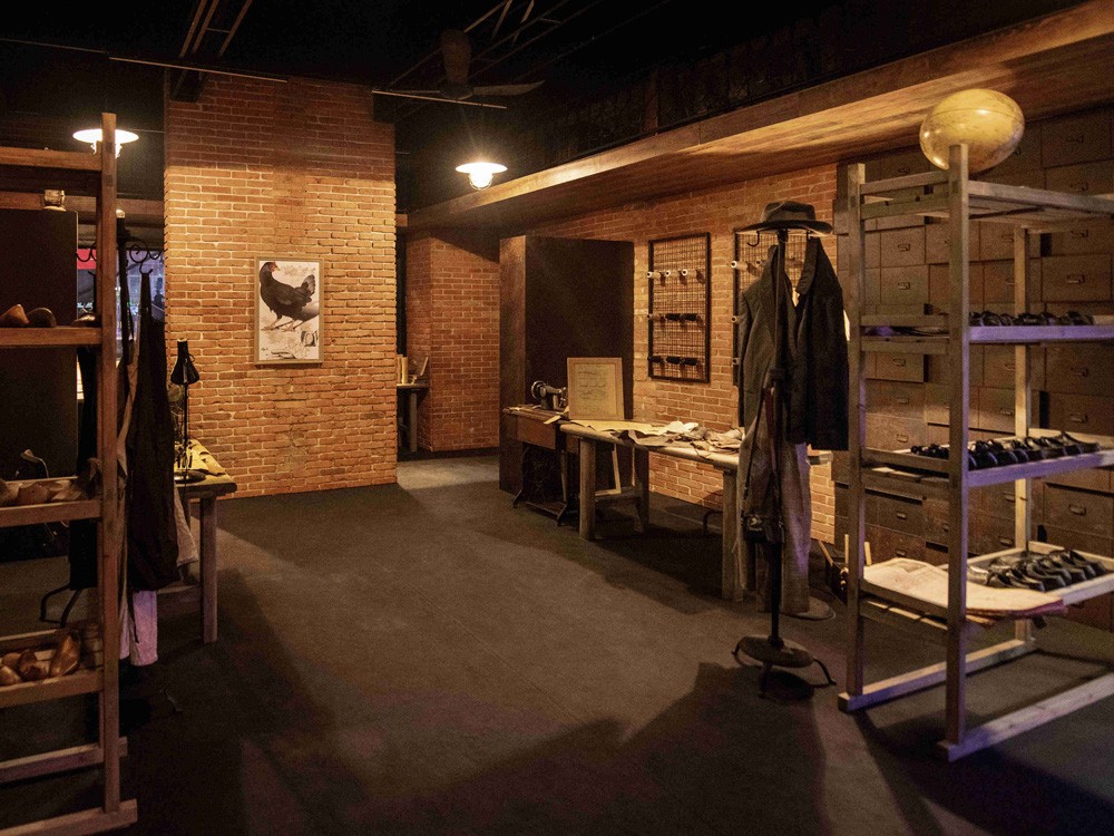 砖墙筑就的门店、做旧的海报和设计稿,确立了 “制造卓越,不断突破” 的品牌精神。