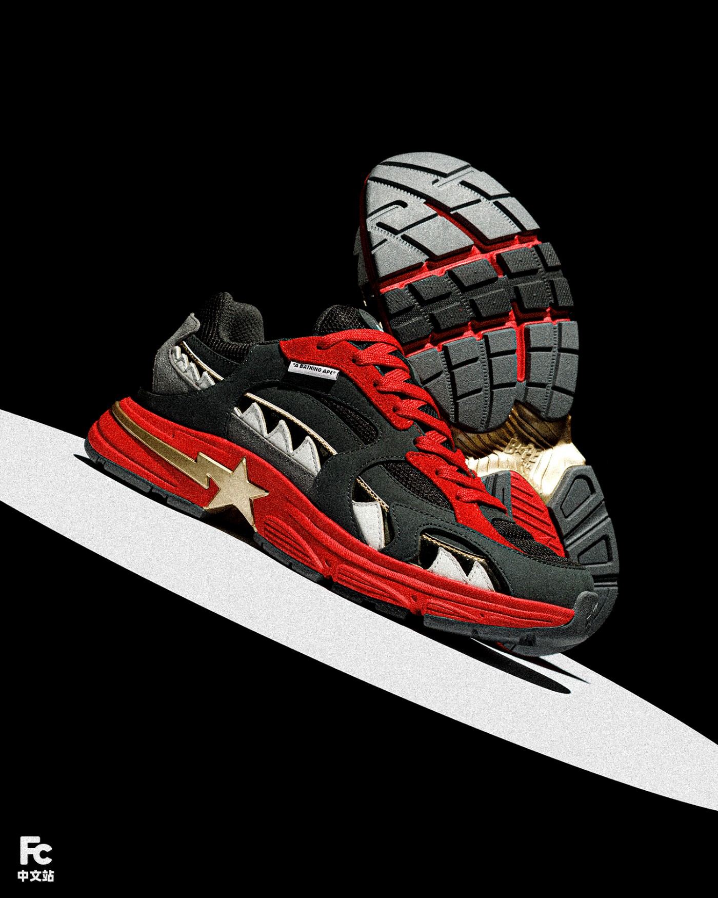 流线型鞋身 + 辨识度超高的设计,BAPE® 全新鞋型 SHARK STA 大家觉得怎么样?