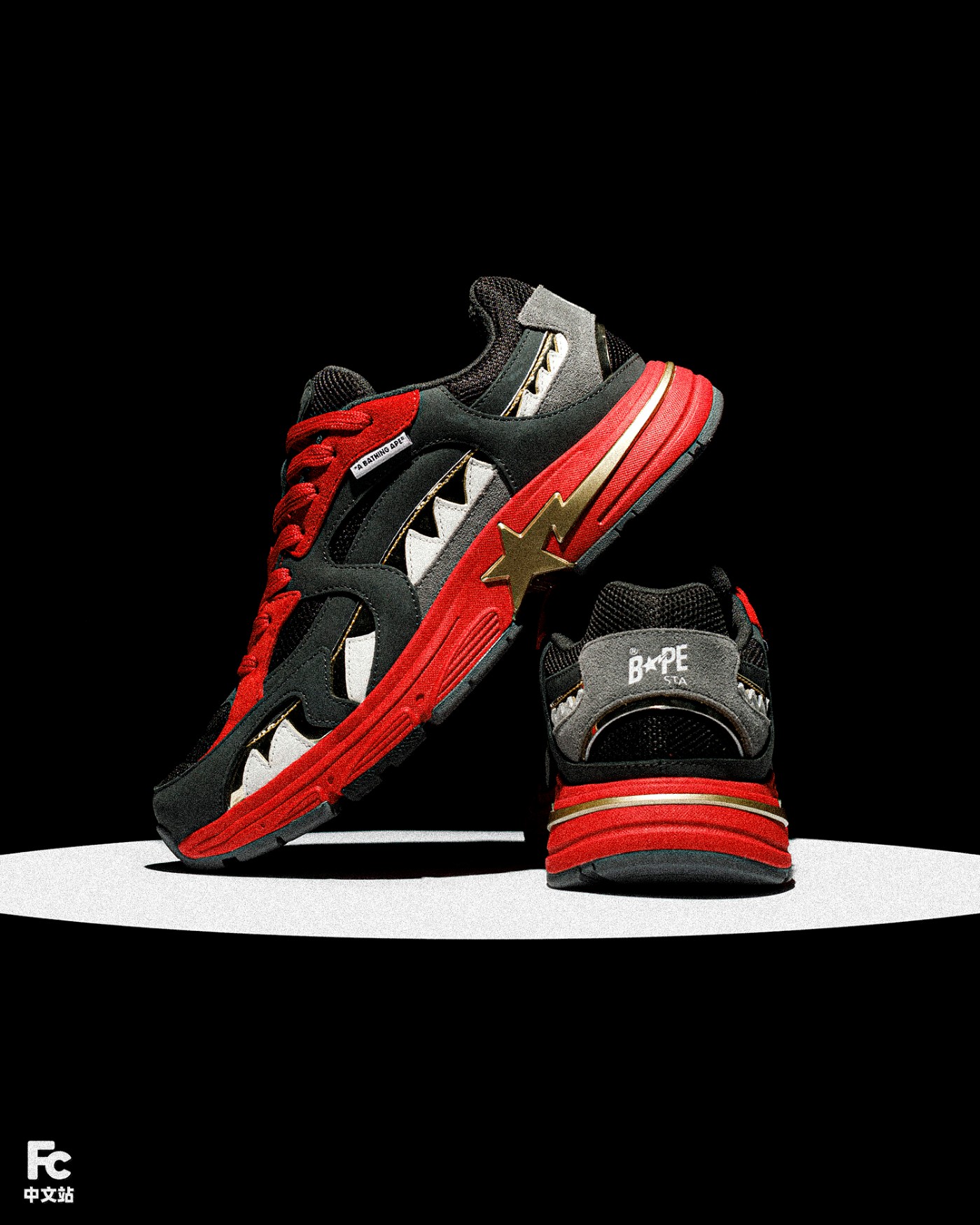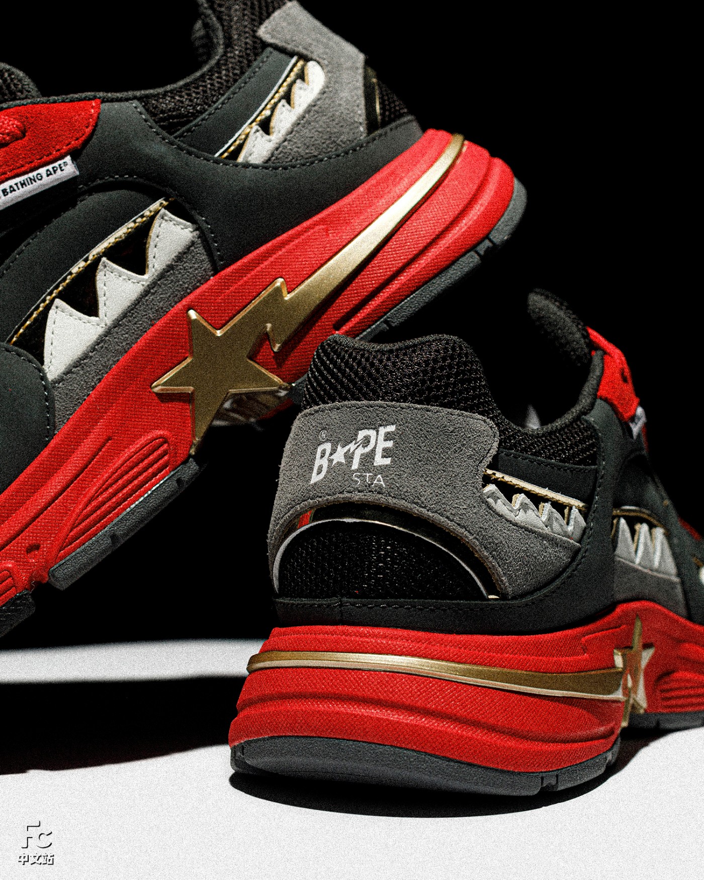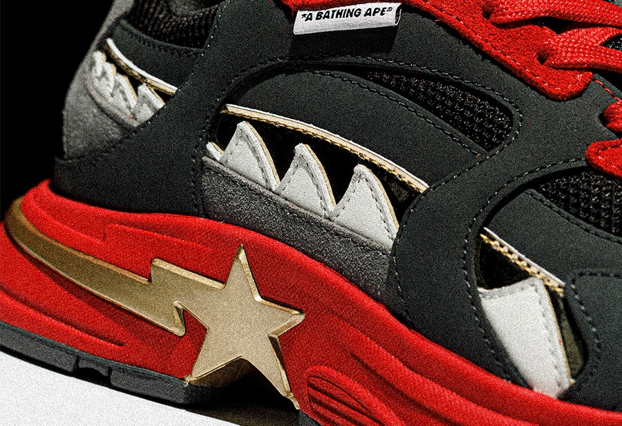 SHARK STA 是为庆祝 BAPE® SHARK ZIP UP HOODIE(鲨鱼拉链帽衫)问世 20 周年打造的全新鞋型。