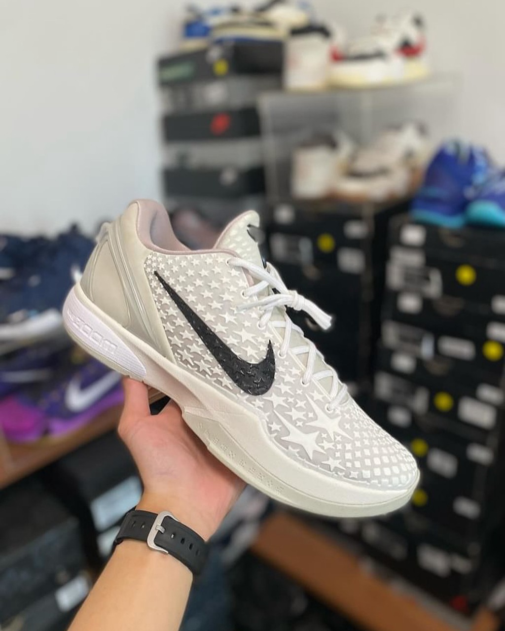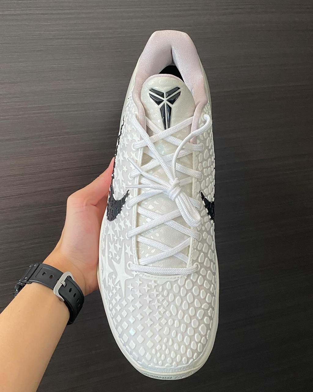 最大亮点在于鞋身外侧运用代表全明星赛的星箭元素刻画,内侧则保留 Kobe 6 独有的蛇鳞纹理。