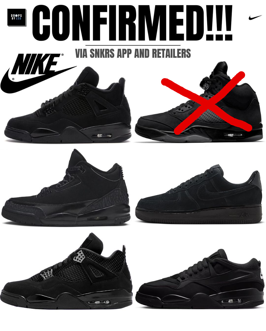 看起来一大批黑色装扮的 Air Jordan 和 Air Force 1 鞋款即将登场,其中包含了人气极高的黑猫 Air Jordan 4 “Black Cat”。