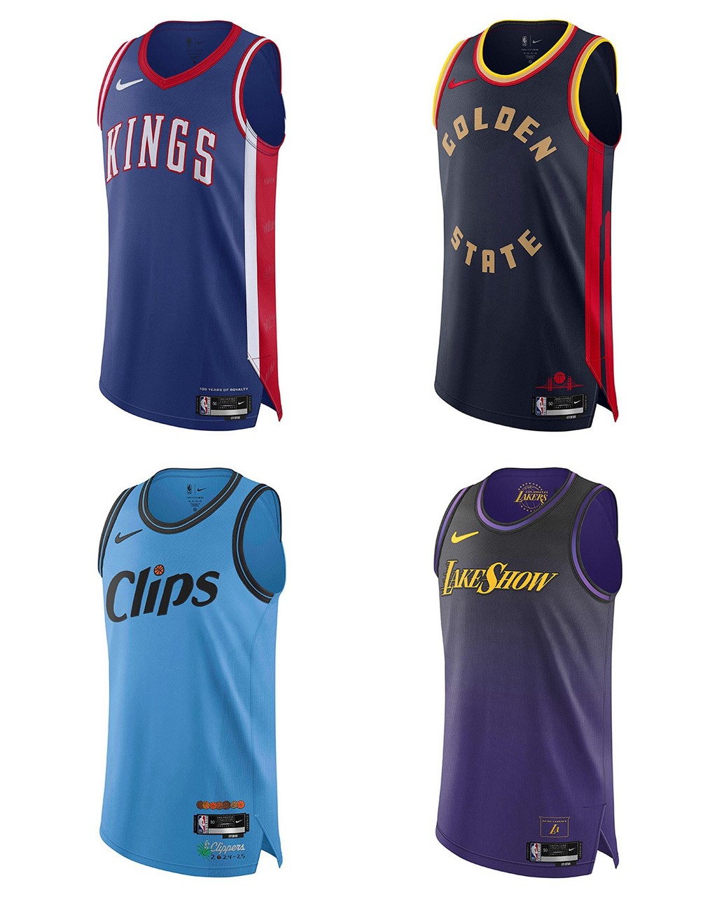 两只流量大队湖、勇,这次的球衣都有些乏善可陈,勇士的球衣倒是让人想起当年的中文限定球衣,快船队都换球馆了,球衣也不说好好设计设计,实在可惜,国王则走的是复古风。