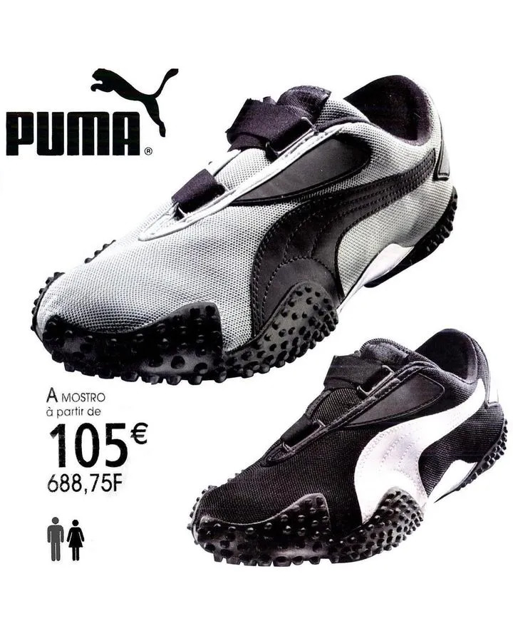 它可以称得上是 “杂交鞋” 的鼻祖了,PUMA 的设计师从 60 年代的跑步钉鞋和 80 年代的休闲船鞋中汲取灵感,将其合二为一,选用了意大利单词 Mostro 为其命名,翻译成中文就是 “怪物” 的意思。