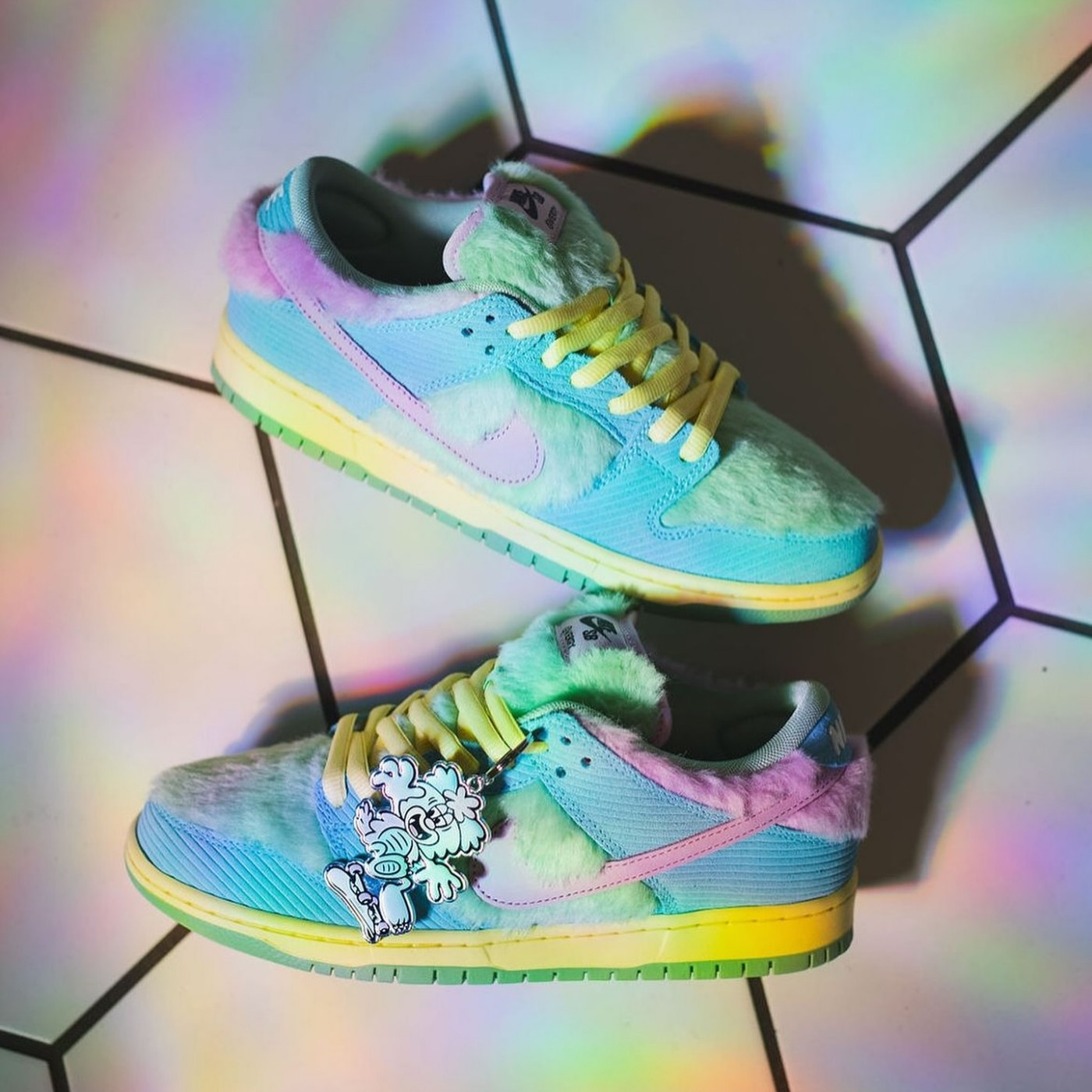 由 Nike SB 和艺术家 Verdy 打造的这双鞋,设计灵感源自名为 Visty 的毛绒玩具,因此鞋面以毛绒质感呈现。