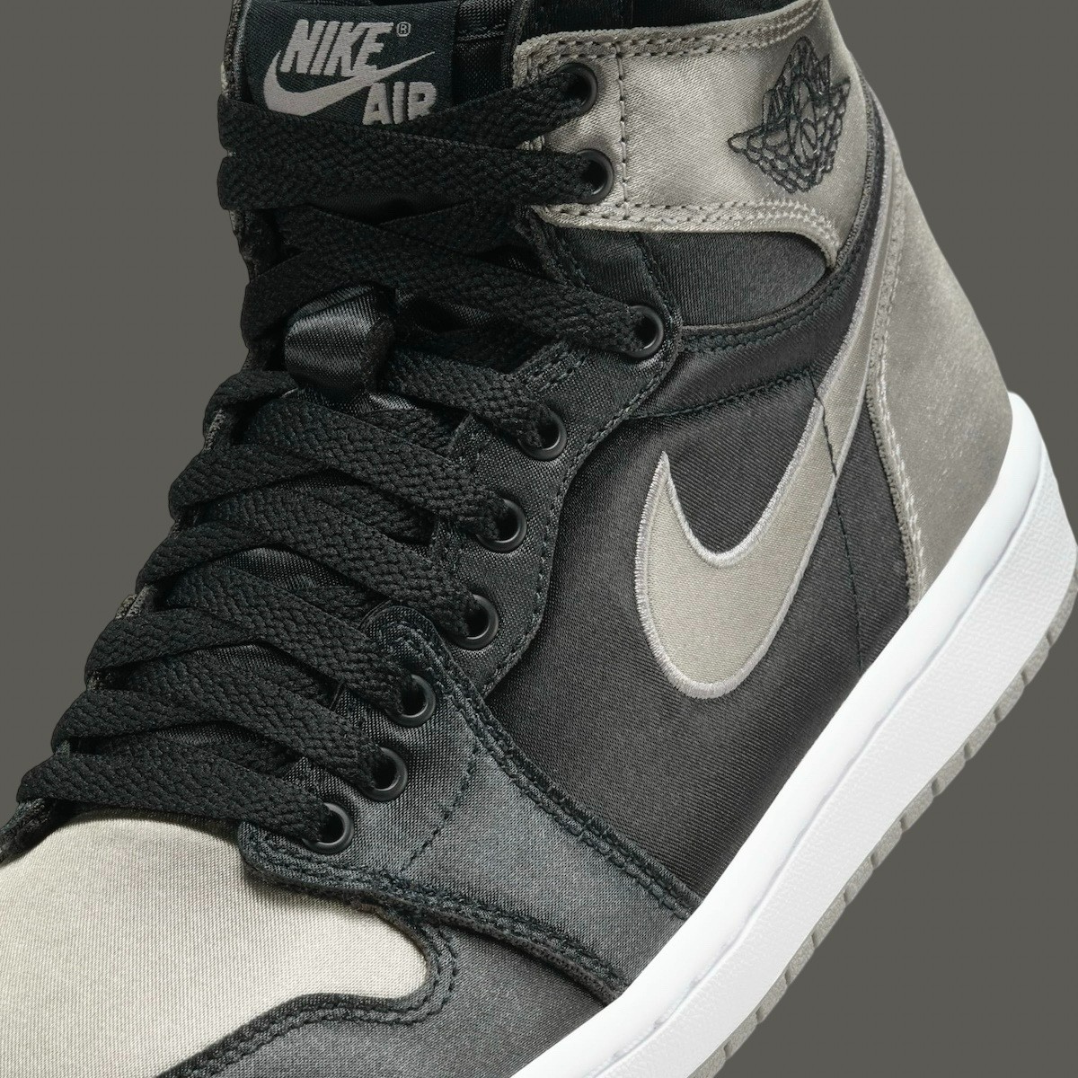 曝光已久的「影子灰」丝绸 Air Jordan 1 下月就要登场了,刚刚该鞋释出了一组官图。