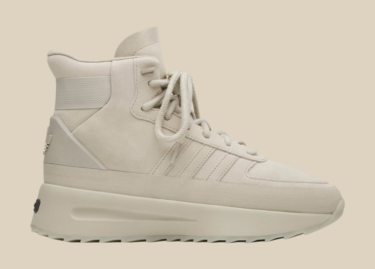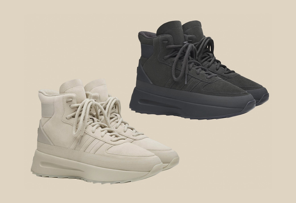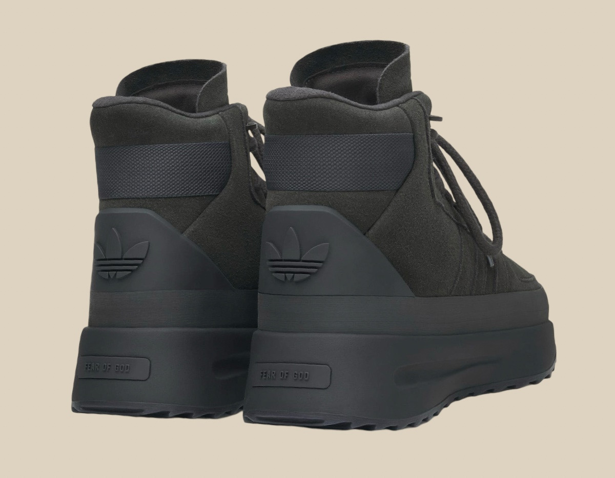 后跟的三叶草造型和 FEAR OF GOD 铭牌展现了这款新品的身份,整体采用单色调贯穿,无论深色配色还是浅色款,都能很容易的进行穿着搭配。