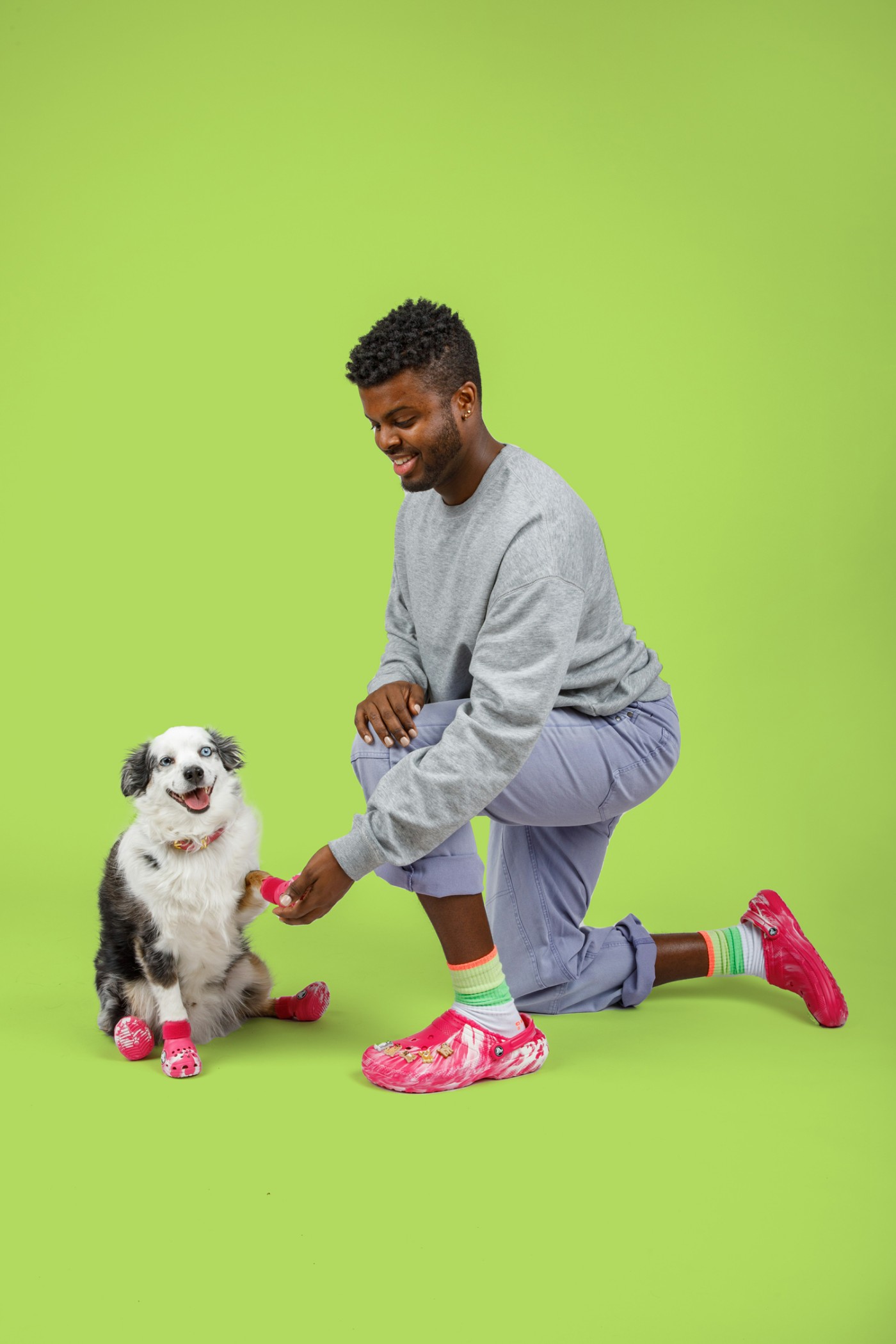 Crocs 宠物洞洞鞋和其配套的成人款经典洞洞鞋以及人形洞洞鞋装饰将于 10 月 23 日起在 Crocs 官方线上及部分线下店铺开启发售。