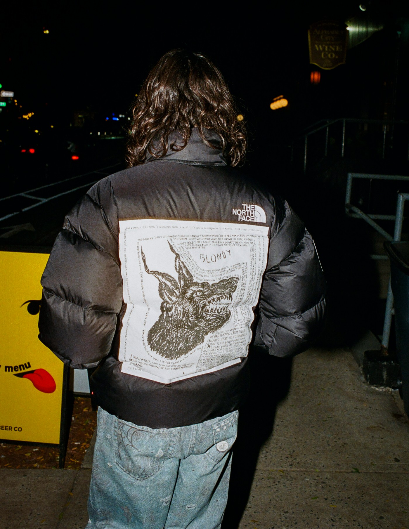 值得一提的是,羽绒服、冲锋衣、短袖和毛线帽均有美国艺术家 Raymond Pettibon 原创艺术作品作为印花呈现。