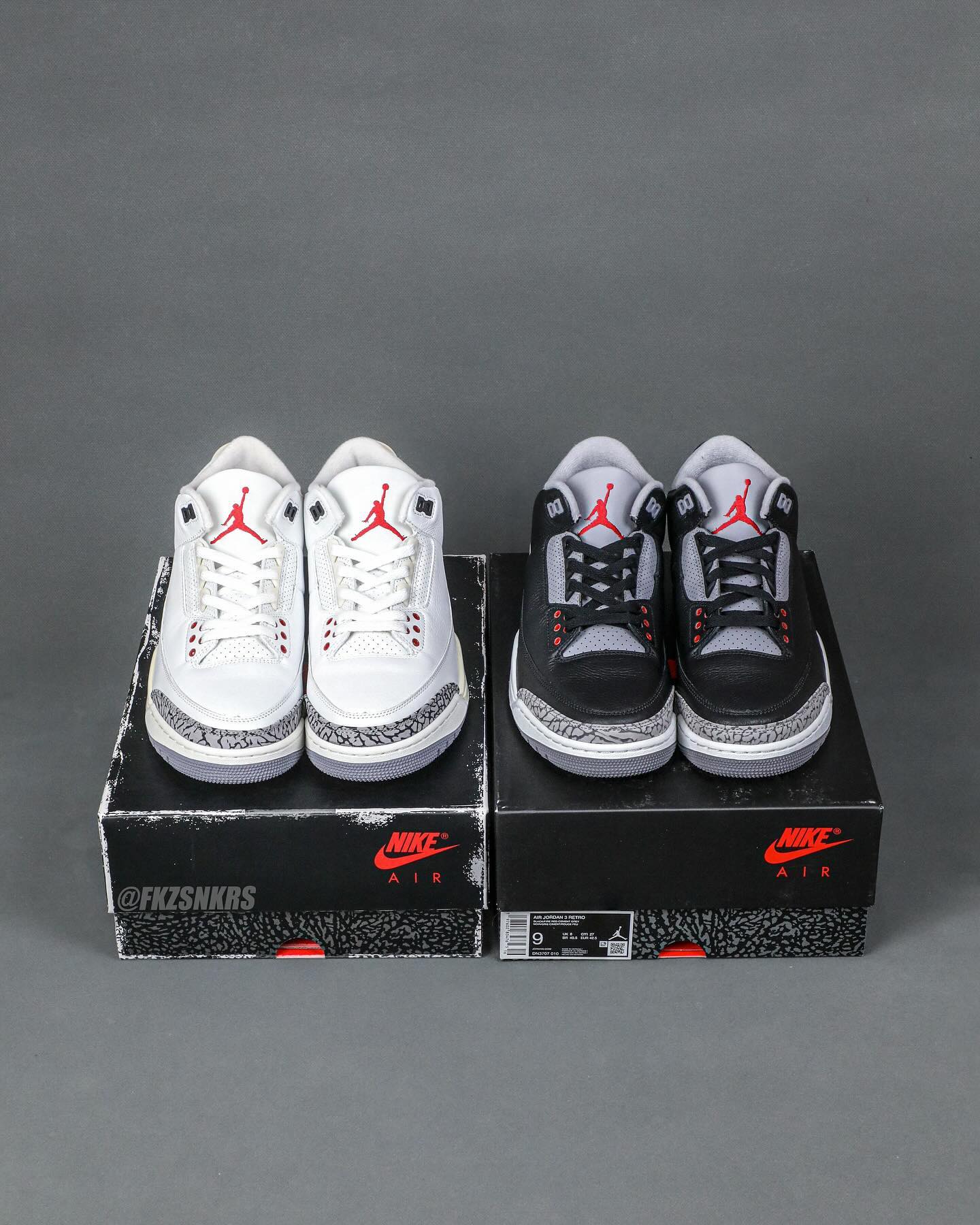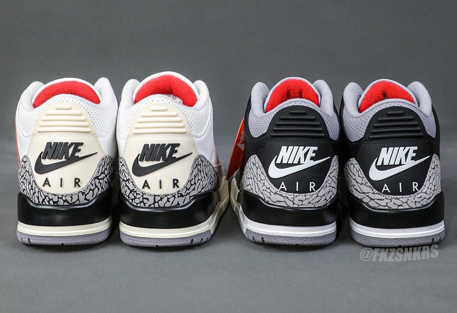 同时也与去年初登场的「白水泥」 Air Jordan 3 “White Cement Reimagined” 放在一起进行了对比,各具韵味。