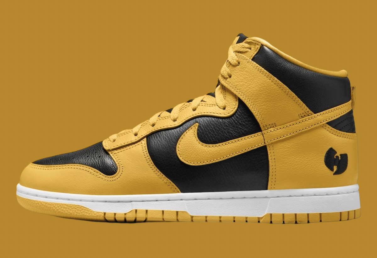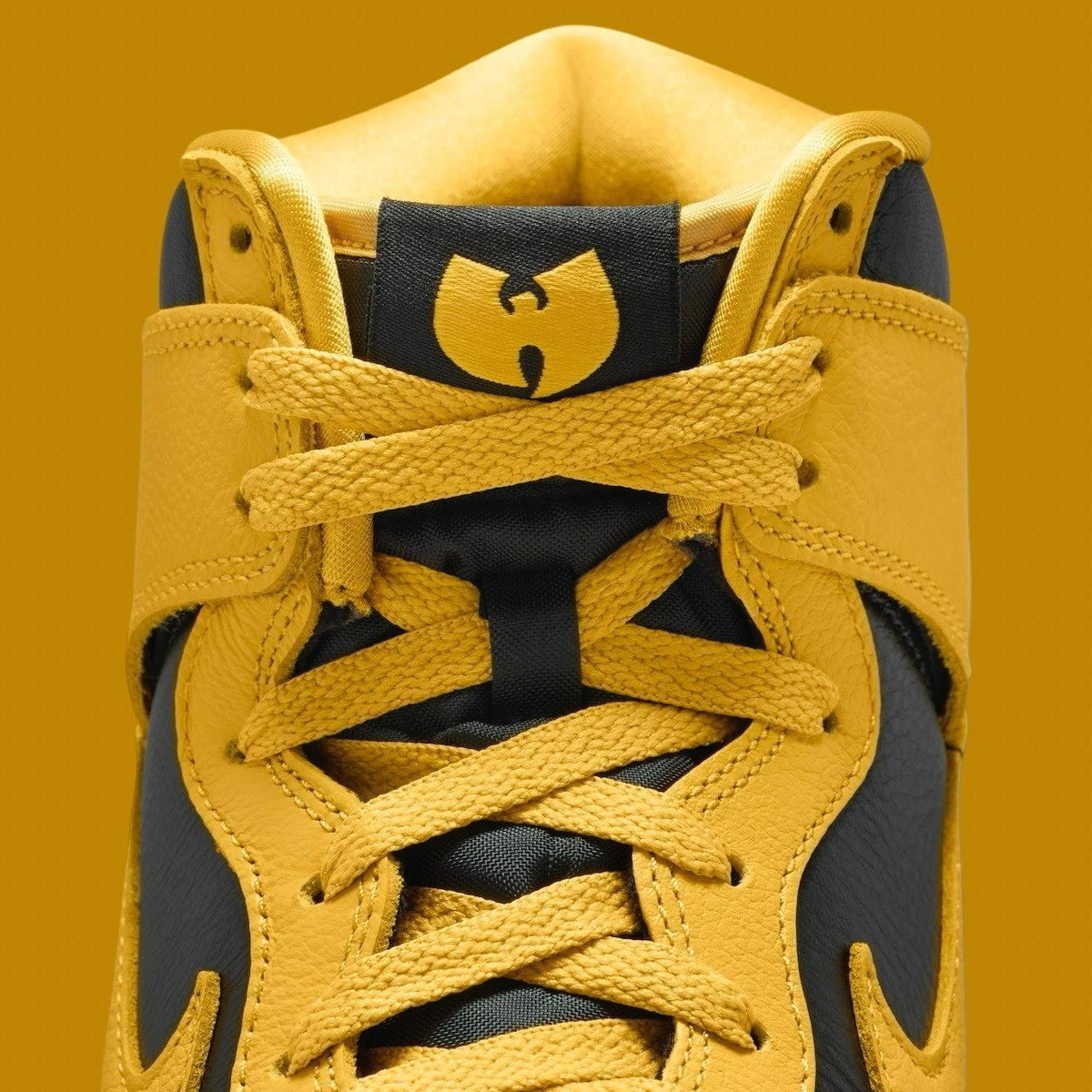 鞋身多处细节彰显了该鞋的身份,辨识度超高的 “Wu-Tang” Logo 让其区别于其它黑黄 Dunk。