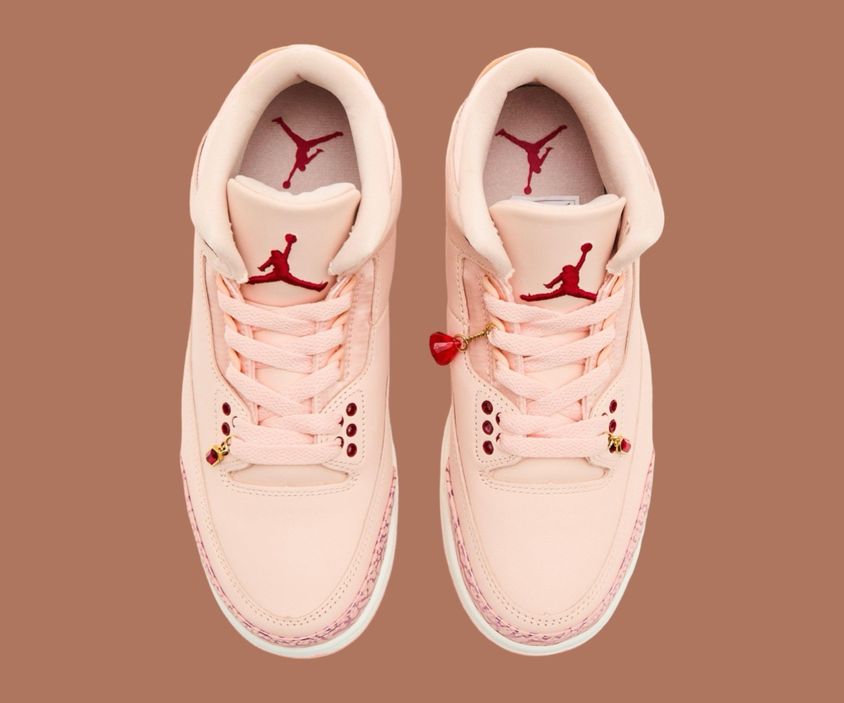 眼前这款「情人节」Air Jordan 3 WMNS 近日释出完整清晰实物,无论清新甜美的色调呈现,还是细节的华丽氛围,都让人眼前一亮。