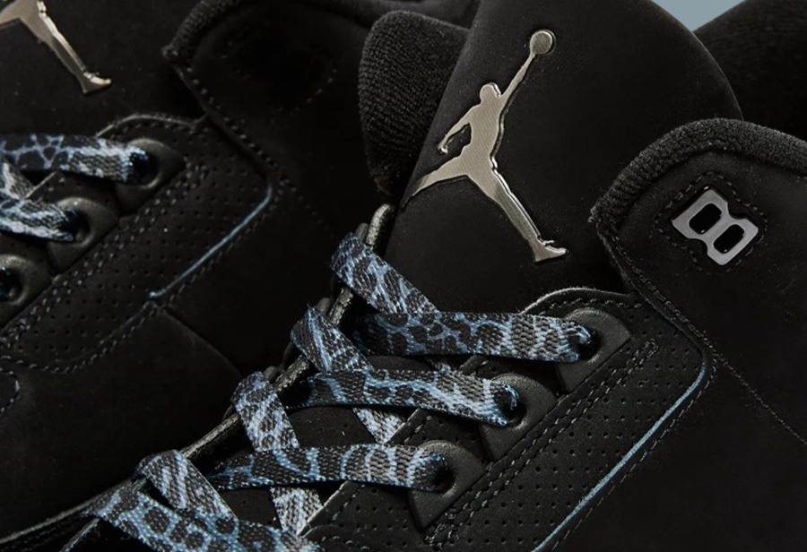 而这双 Air Jordan 3 也很好地体现了这一元素,主要集中在鞋带上的豹纹,隐隐约约释放杀气。