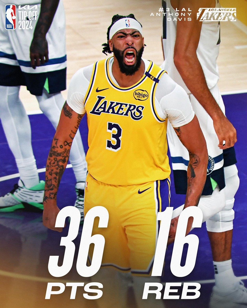湖人在新帅的带领下,在进攻端更加合理,尤其是浓眉,面对三届 DPOY 戈贝尔爆砍 36 + 16 率队取胜。