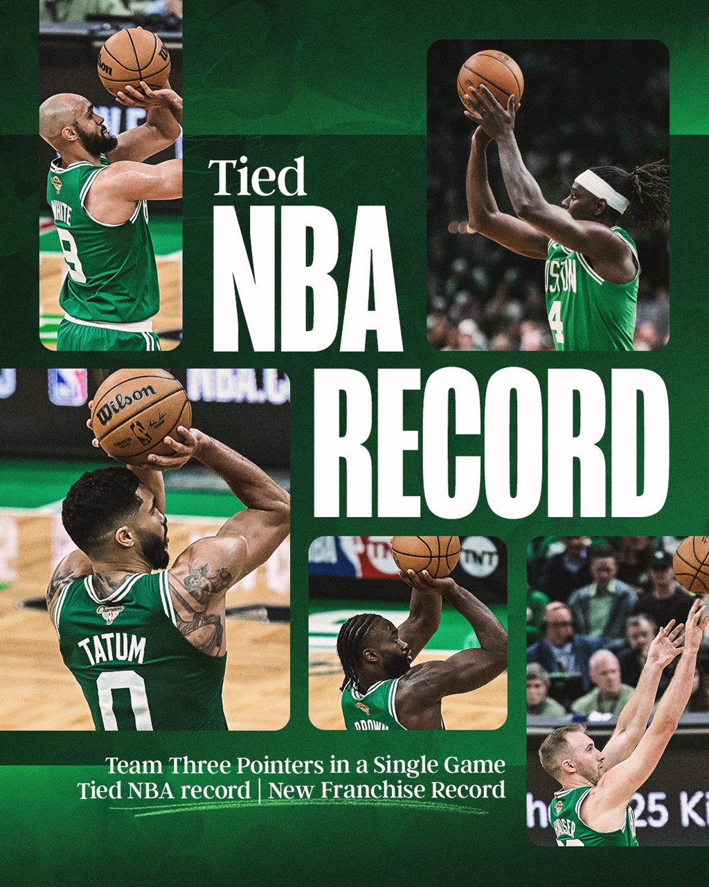 首场比赛,绿军就告诉了全世界为什么他们是冠军,全队狂射 29 记三分打爆尼克斯,同时追平了 NBA 历史纪录。
