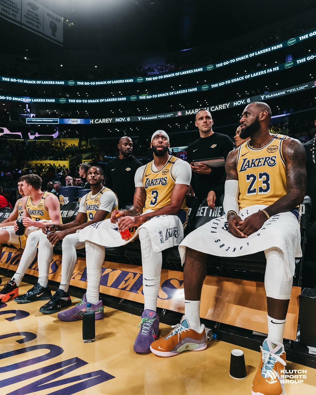最后,让我们一起回顾下昨天揭幕战两场比赛中,球星们的上脚,尤其是詹姆斯、浓眉二人的新配色 LeBron 22,相当炸裂!