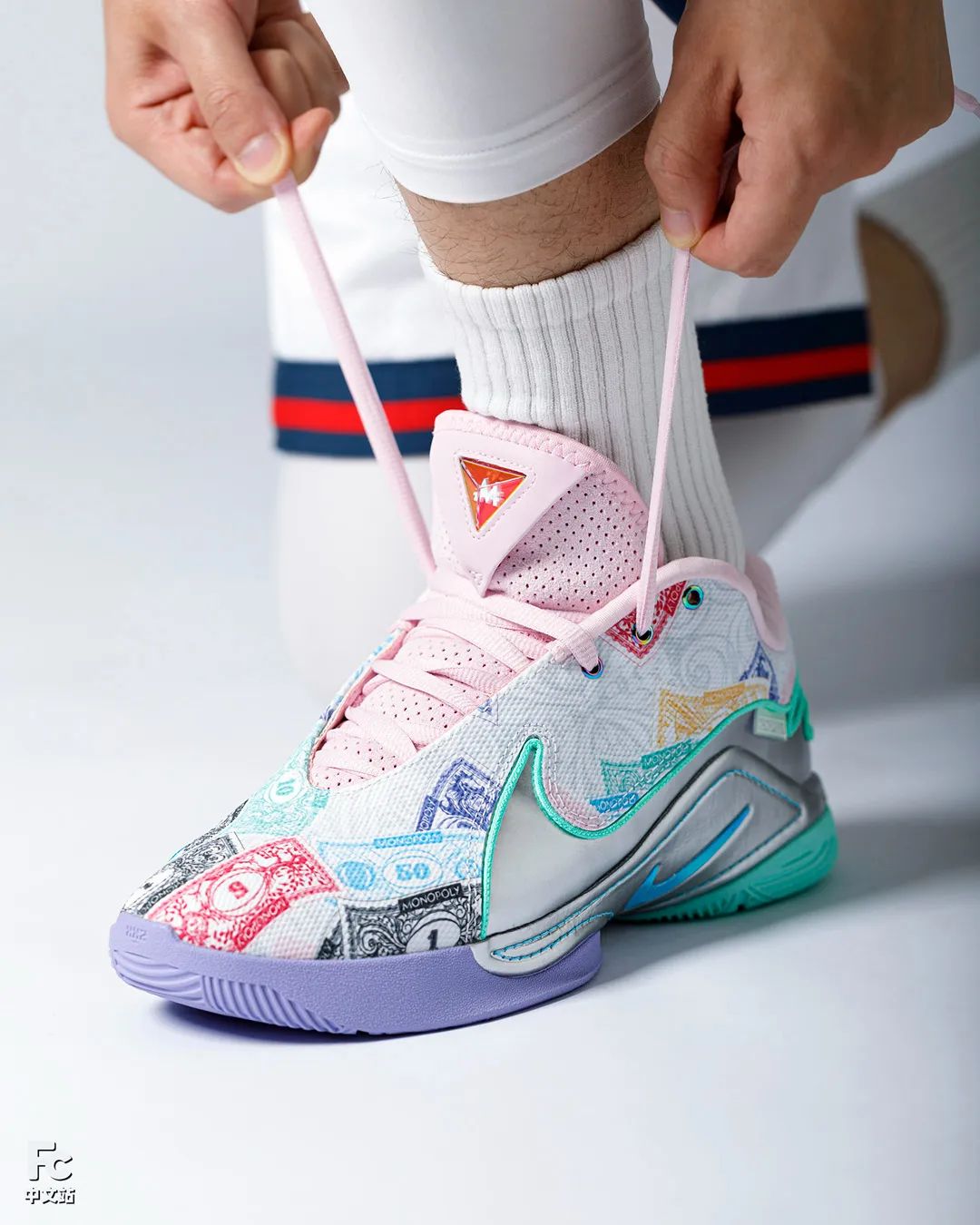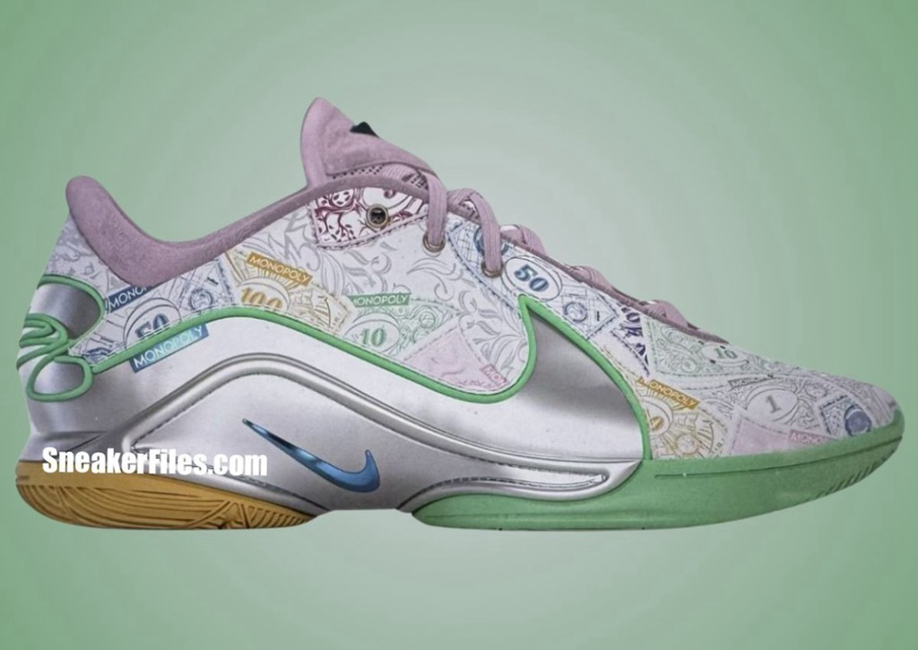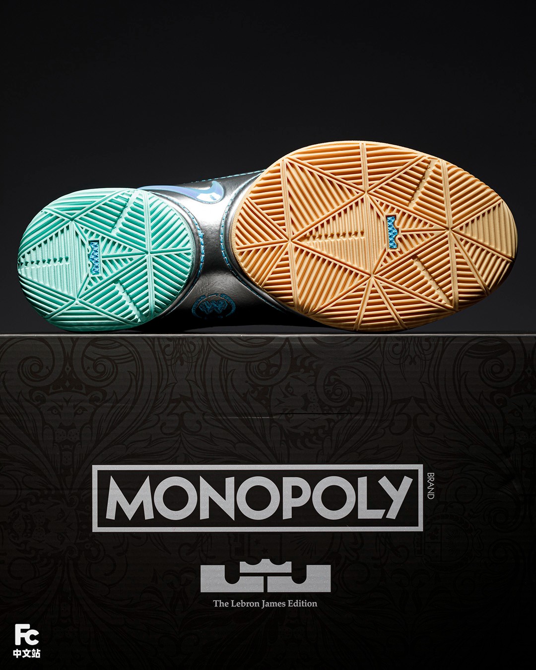 MONOPOLY 大富翁是詹姆斯儿时最爱的桌面游戏,某种程度上也启发了他的投资思维,为日后的商业帝国打下基础,而鞋面上这些五彩缤纷的钞票,就是游戏中的 “货币”。