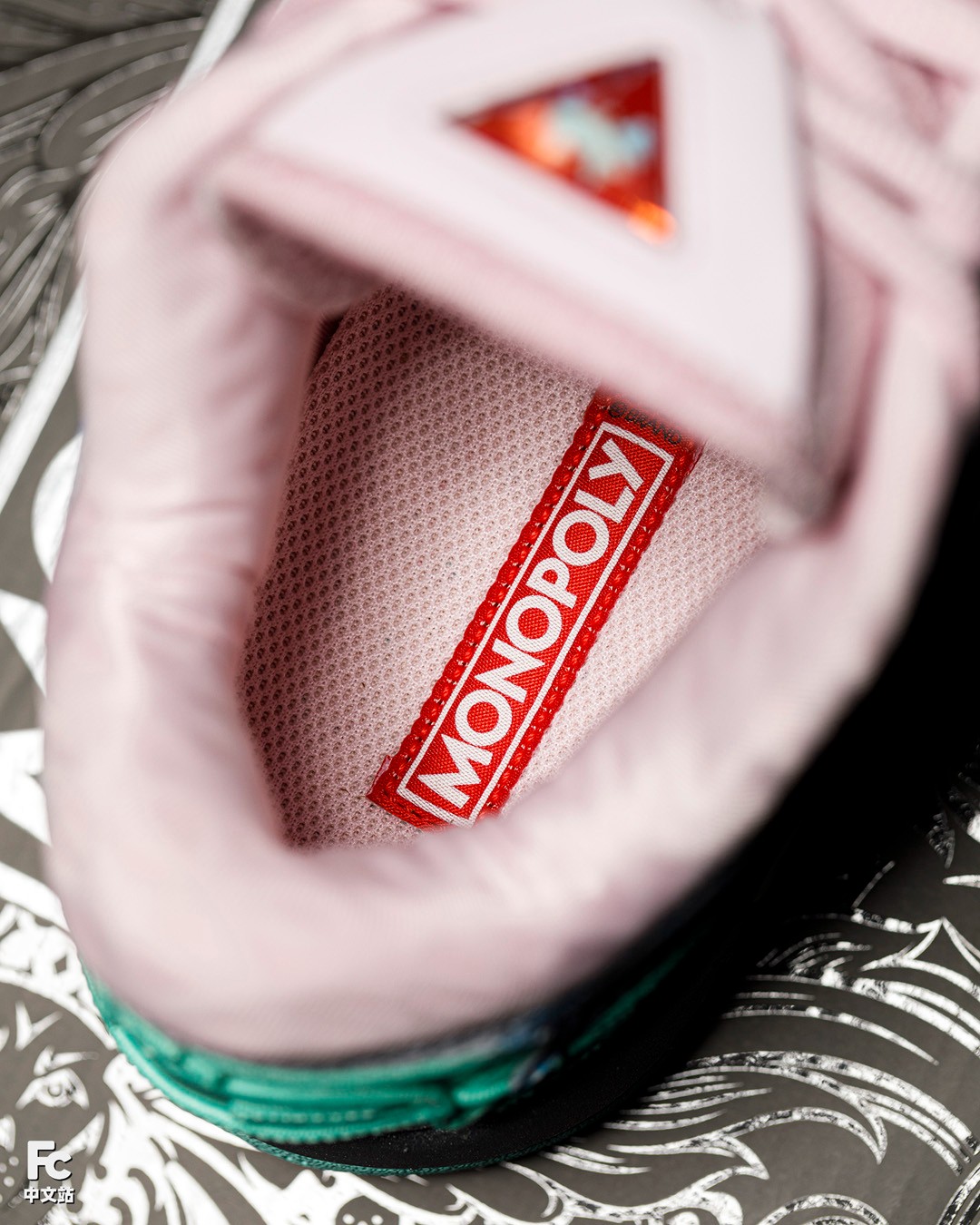 并且可以看到鞋垫还绣上了 MONOPOLY 的 Logo,以此彰显独特的联名身份。