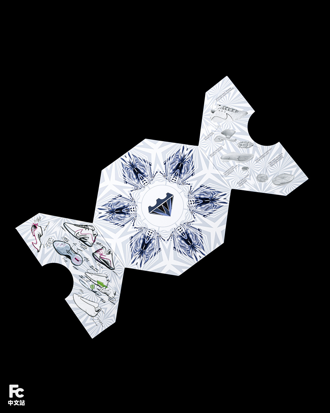 就连鞋款附赠的科技拆解小卡片,都被设计成了钻石的样子,可以说这个设计元素覆盖了产品的每一处。
