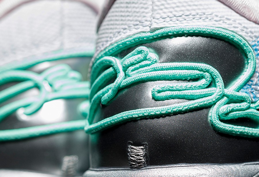 来到鞋舌,可以看到这种类似钻石切割般的造型设计,相信看到这里,Nike LeBron 系列的老粉丝们 DNA 已经开始动了。