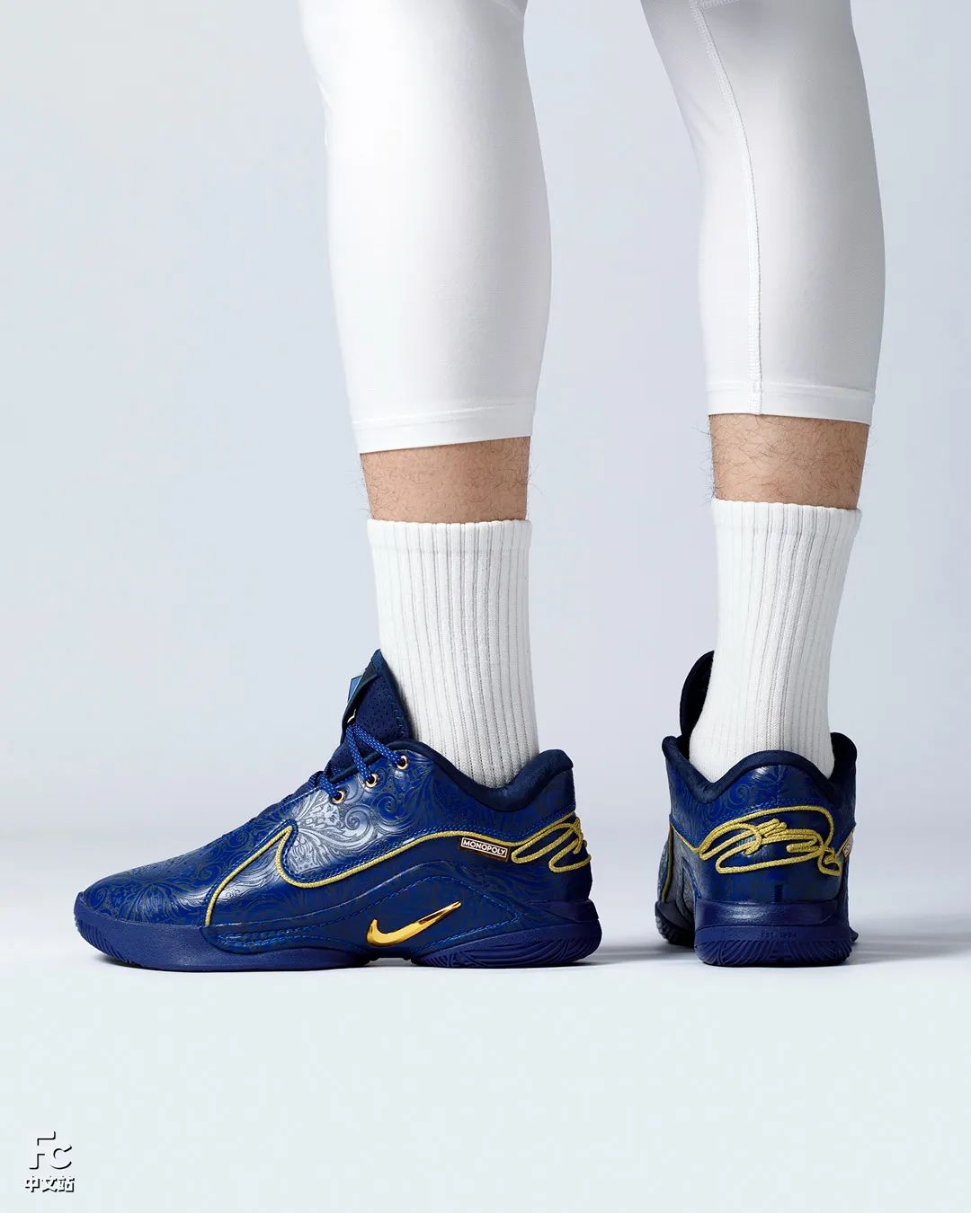 鞋身细节处处散发着贵族气质,电镀金色 Swoosh 和金色签名更是成为点睛之笔。