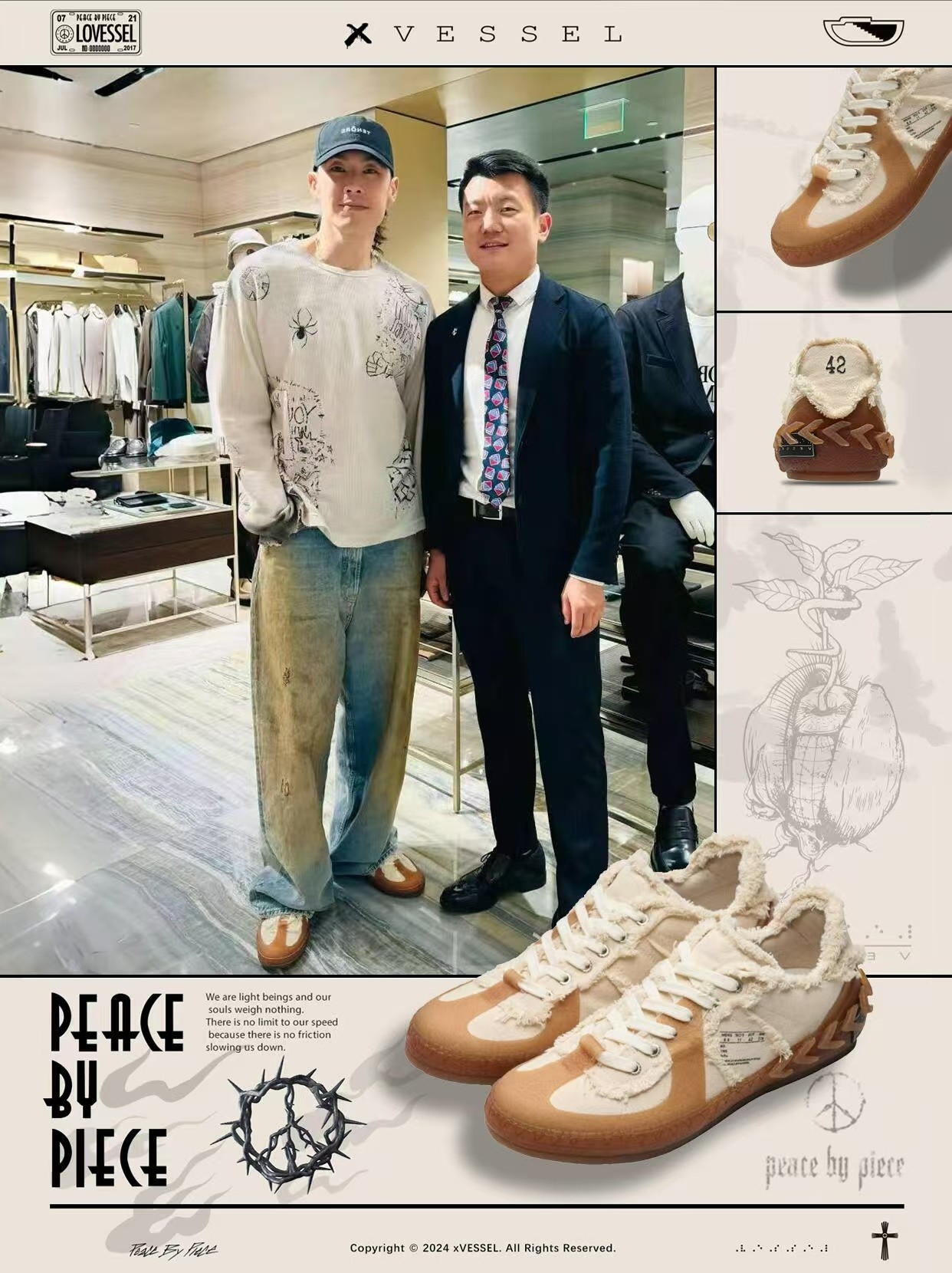 有着 T 头鞋经典元素的同时,巧妙融入 xVESSEL 品牌 DNA,整双鞋看起来熟悉又特别。