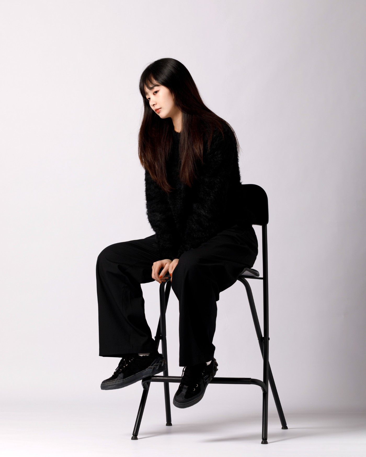 另一双虽然通体是纯黑色,但由于鞋款独特的线条以及不同材质的碰撞,我们也能感受到丰富层次。