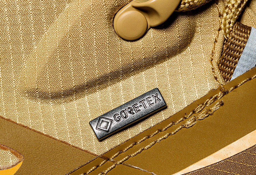 除此之外,全鞋拥有 GORE-TEX DURATHERM 防水层科技,搭配特别设计的弹力加厚绒毛鞋领与鞋带顶部钩状设计。