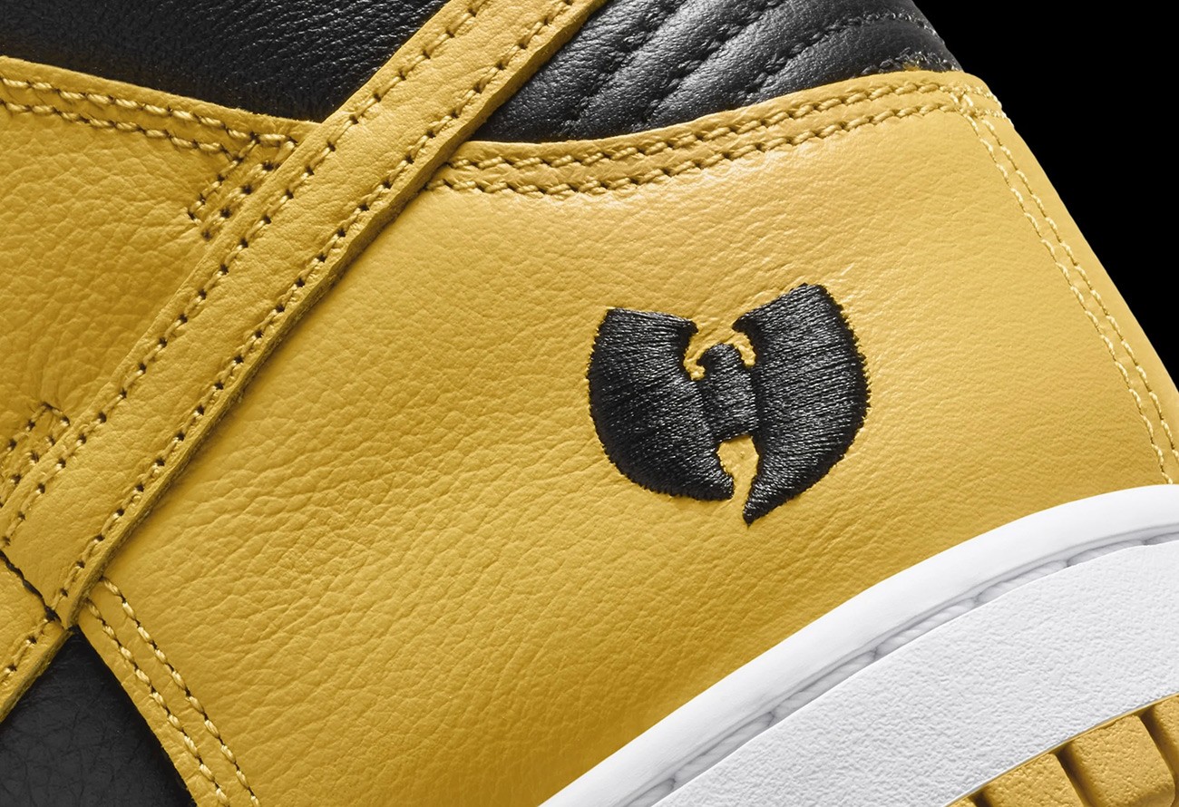 经典又醒目的黑黄搭配,在鞋舌、鞋帮上都有 Wu-Tang Clan 标志性的 W Logo,彰显了这双鞋的合作身份。