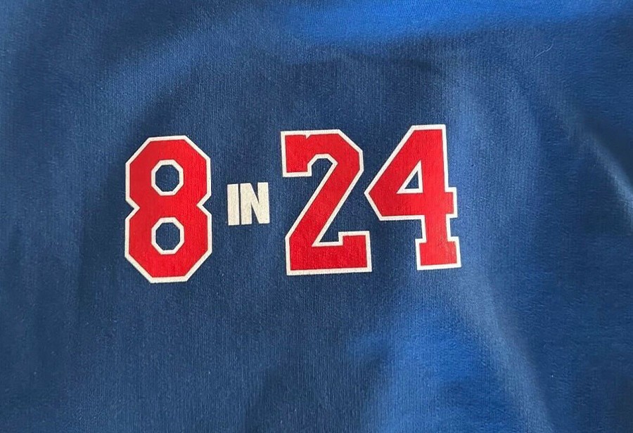 8 和 24 的元素当然也少不了,并且也采用了道奇队的配色呈现。