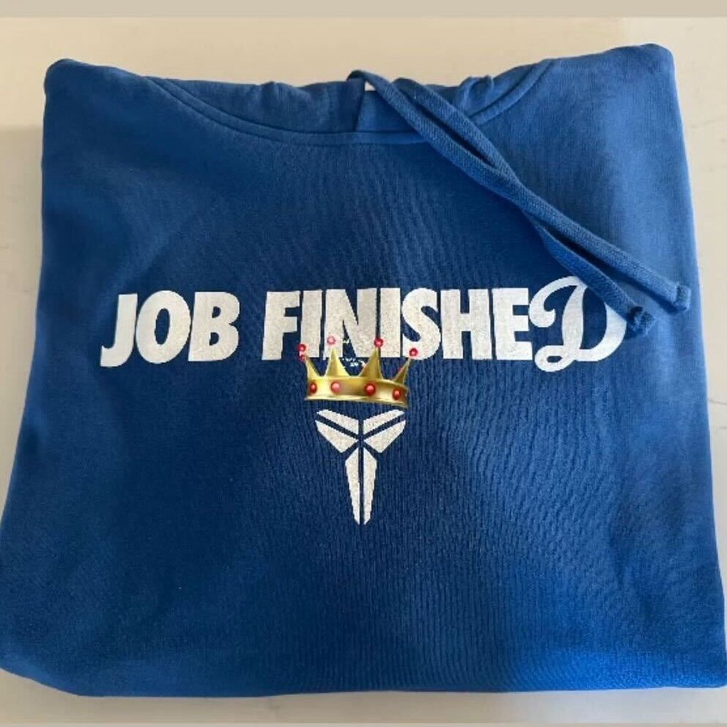 服饰上引用科比曾经在总决赛的名言 “工作完成”,代表道奇队夺冠,其中最后的 D 还换成了道奇队的 Logo,十分具有巧思。
