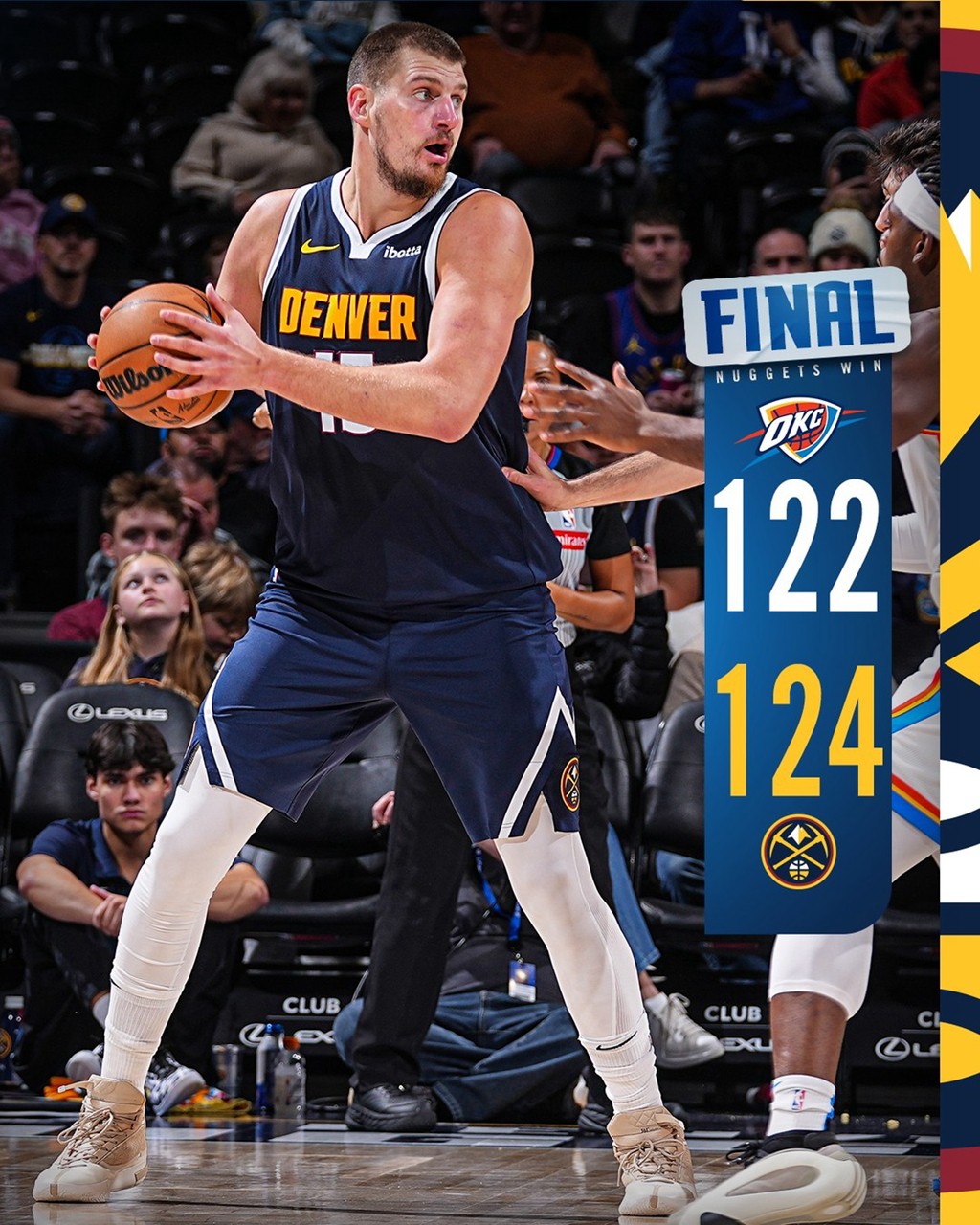反观此前同样全胜的雷霆就没这么舒服了,在丹佛高原被掘金击溃,苦吞赛季首败。