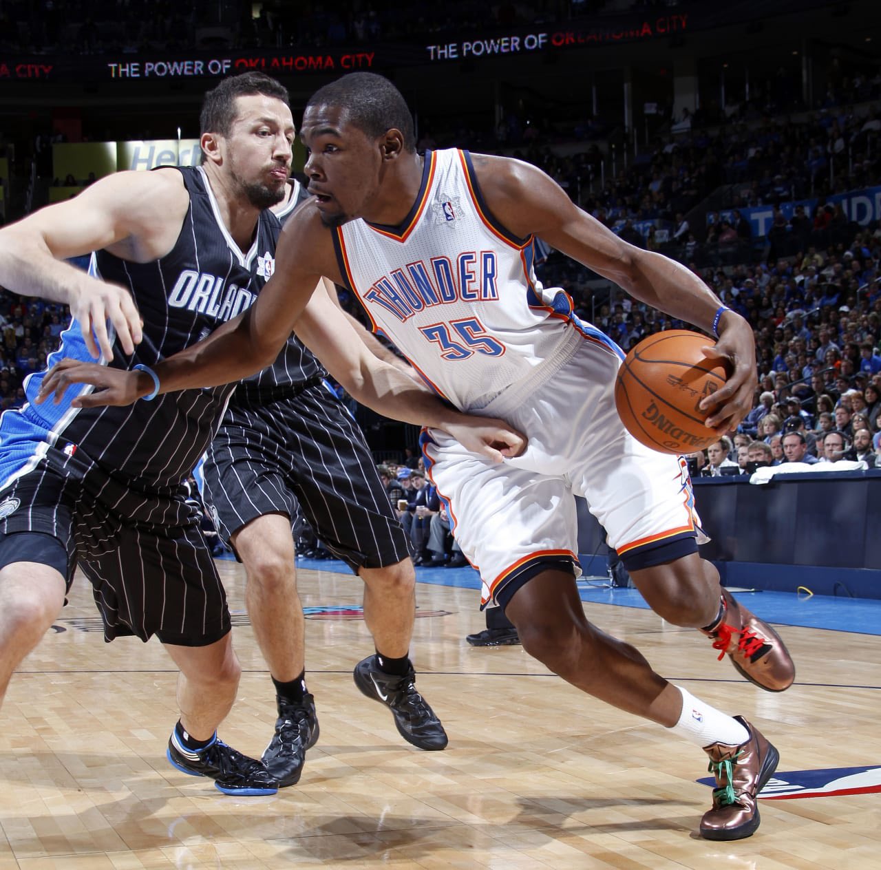 2011 年杜兰特在对阵奥兰多魔术的「圣诞大战」中首次上脚,Nike KD 4 “Christmas” 阔别 13 年后首次回归。