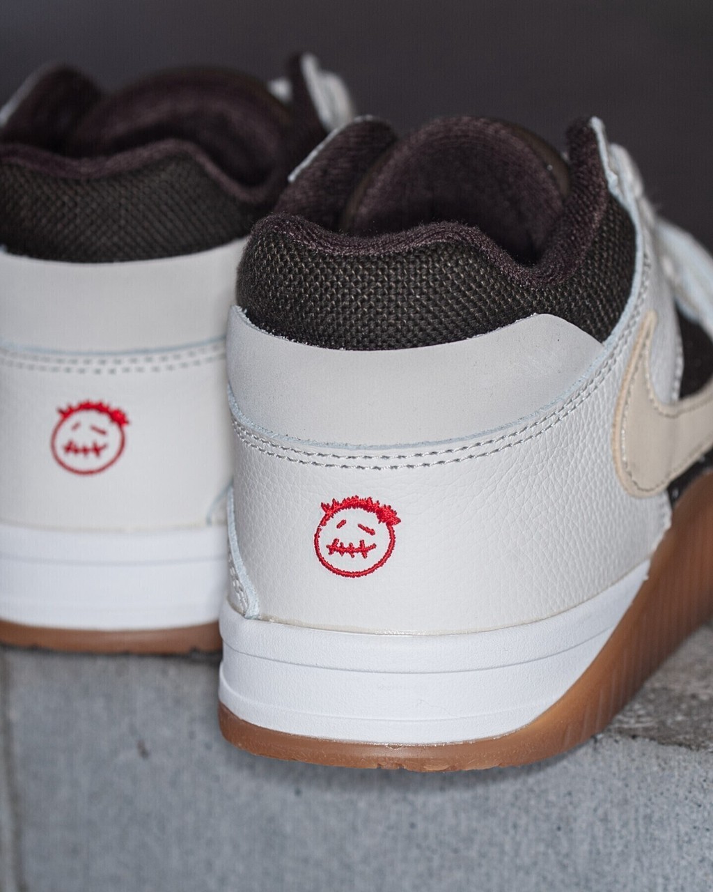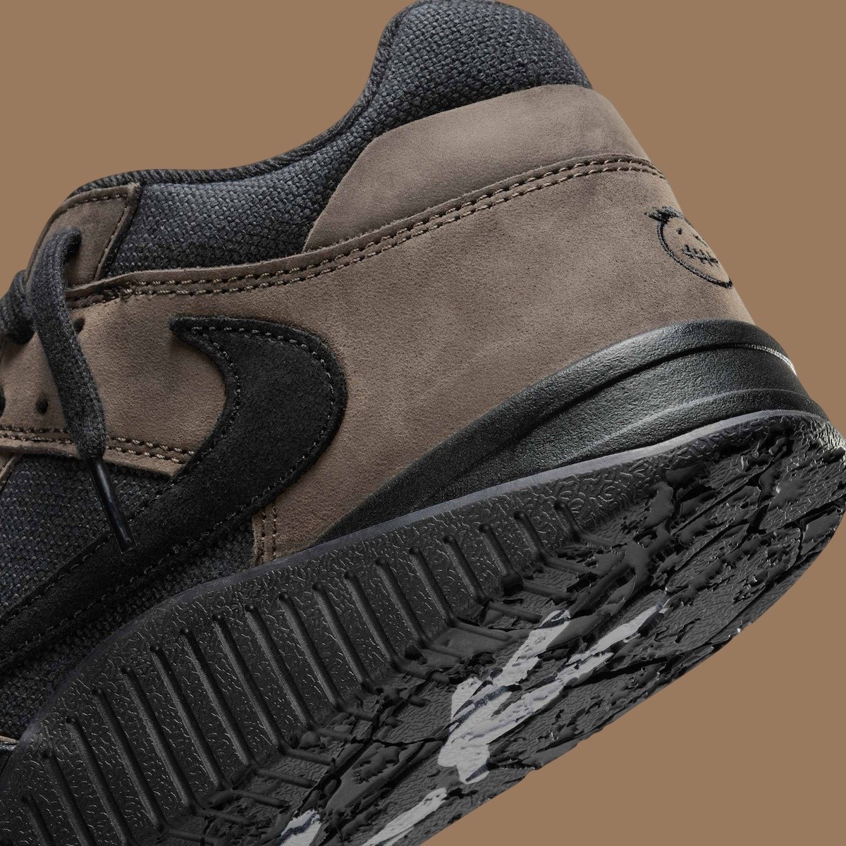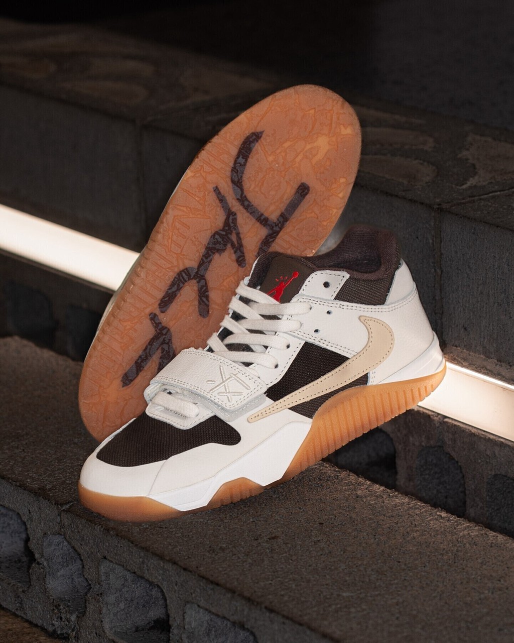 配色则带回初代倒钩 AJ1 标志性的黑棕装扮,而个人标志性的 Cactus Jack 笑脸、倒钩元素、外底 JACK 字样、收纳袋等,都悉数呈现,释放出鲜明的个人专属身份。