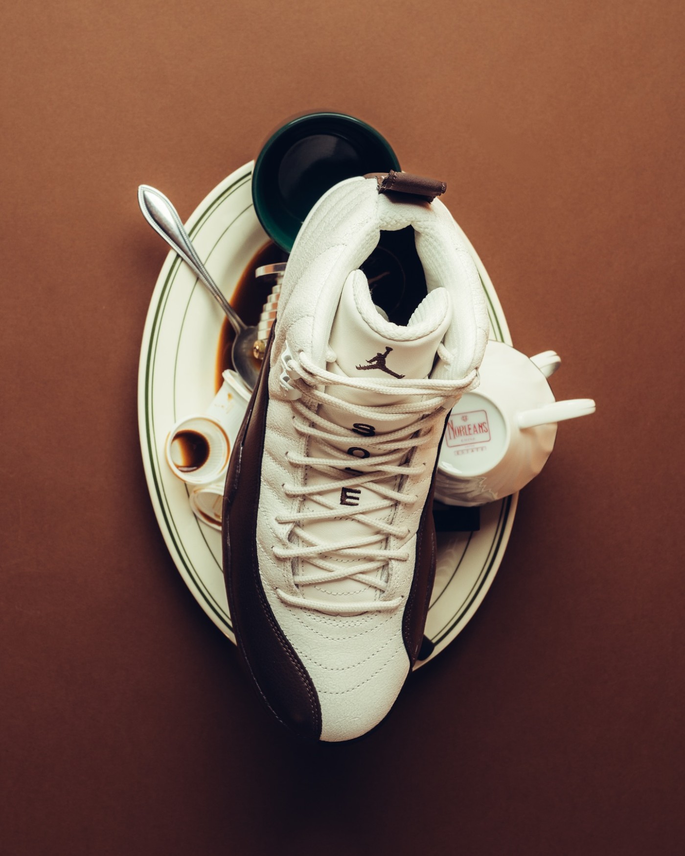 以咖啡文化为灵感来源,这双 Solefly x Air Jordan 12 远观和近赏都有不同的视觉效果。