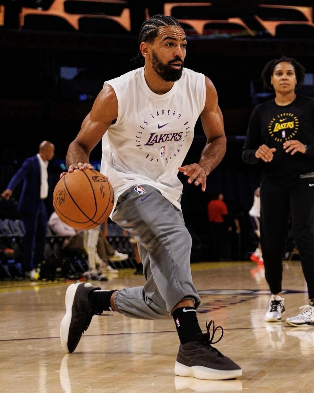 熟悉的湖人装扮加之后跟难得的 8 号刺绣,都是让人难以抗拒的经典元素。