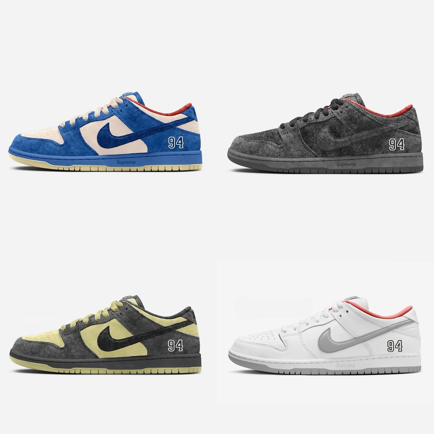 明年 Supreme 跟 Nike 将一口气推出五双联名鞋,鞋型方面均以 SB Dunk Low 为蓝本,目前其中的四款已经得到曝光。