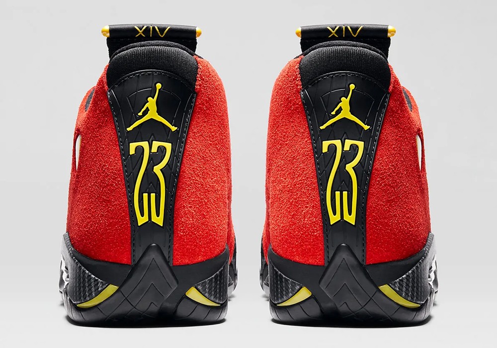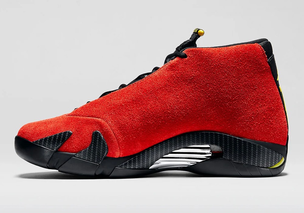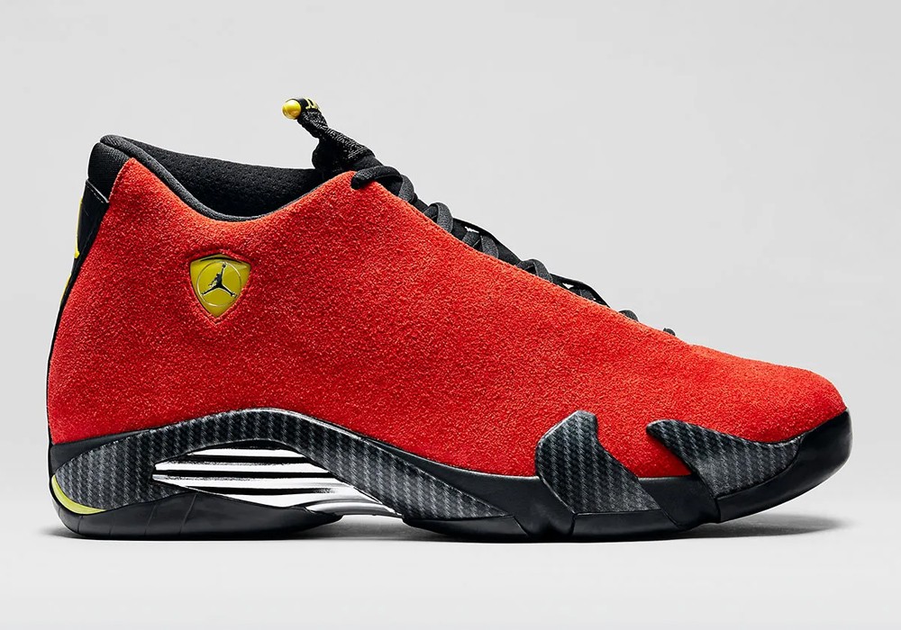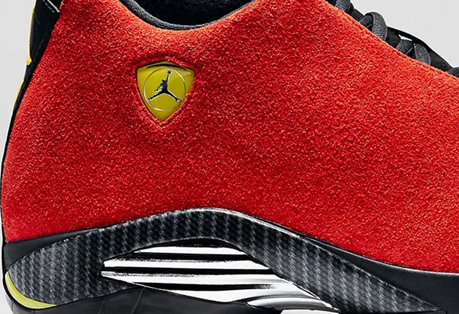 而最能诠释这一设计灵感的配色,恐怕非 2014 年登场的 Air Jordan 14 “Ferrari” 莫属。