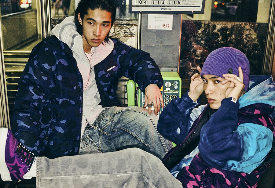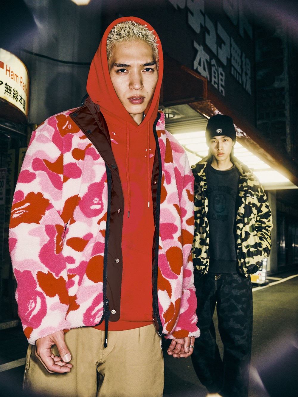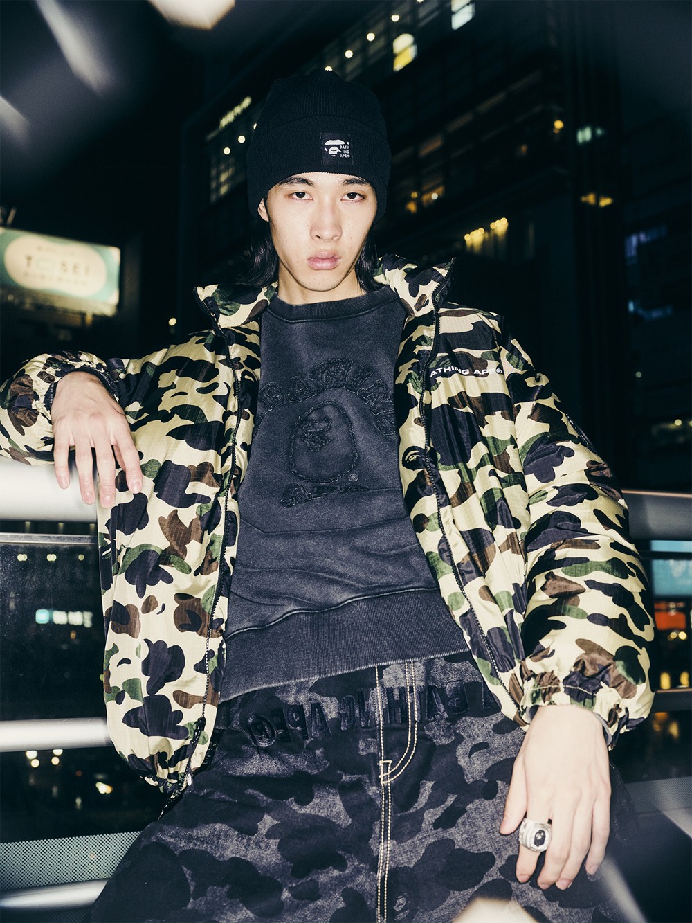 BAPE® 以经典迷彩外套和 BAPE STA™ ICON 新鞋型为高光演绎 2024 冬装时尚大片。