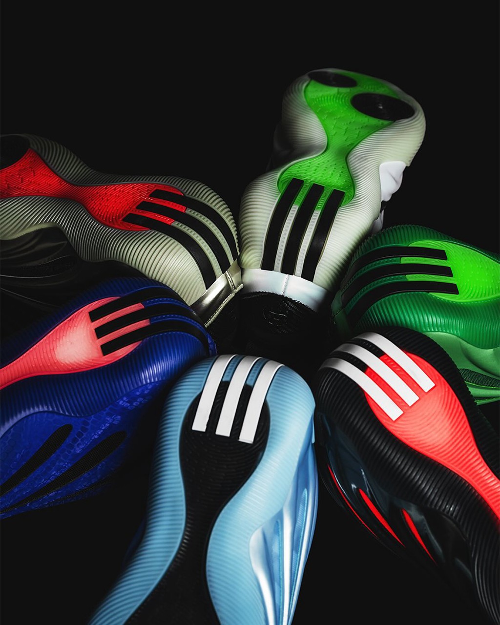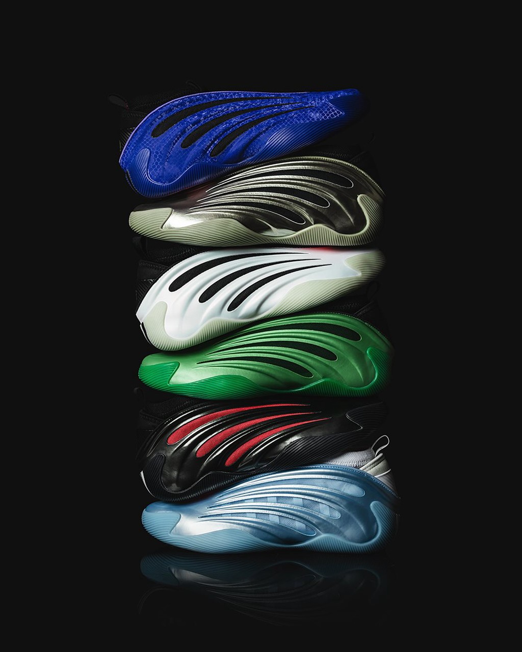 这波一共晒了 6 双,除了哈登前两天亲穿的金属配色外,还有各位心心念念的冰蓝、黑白。