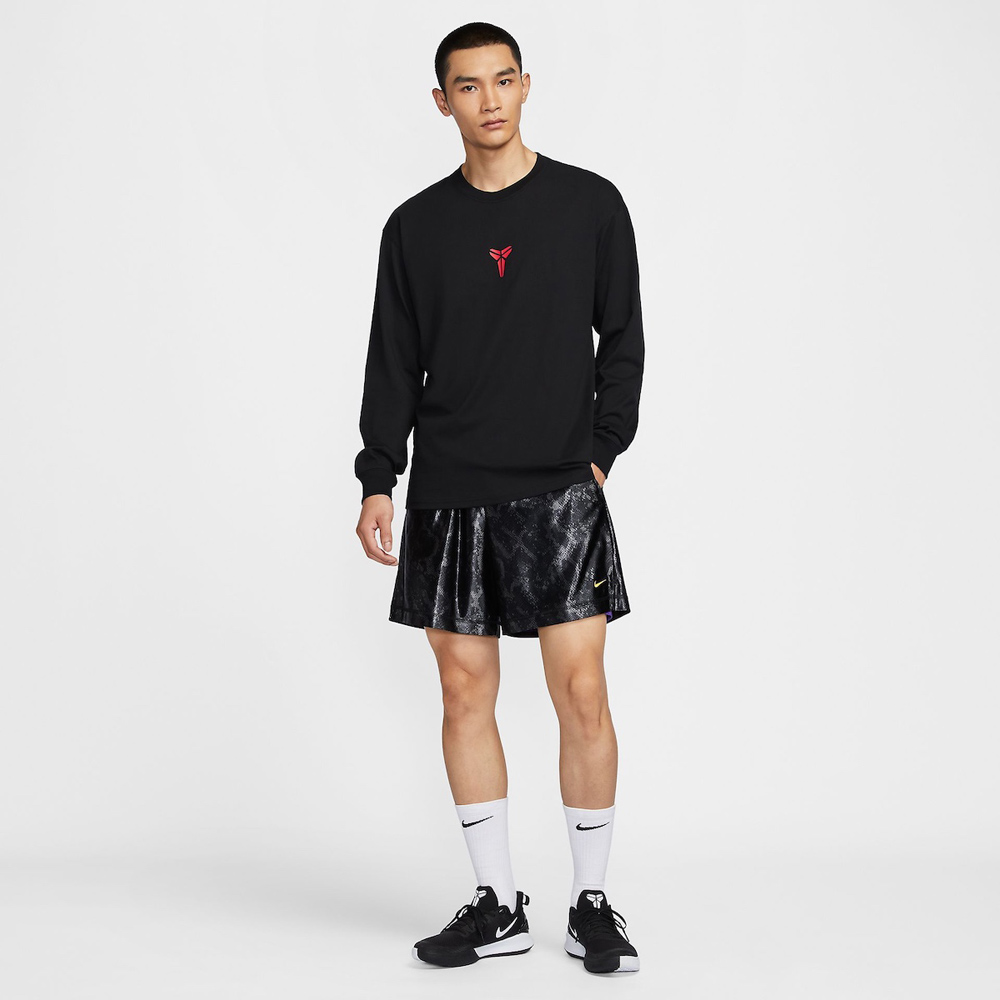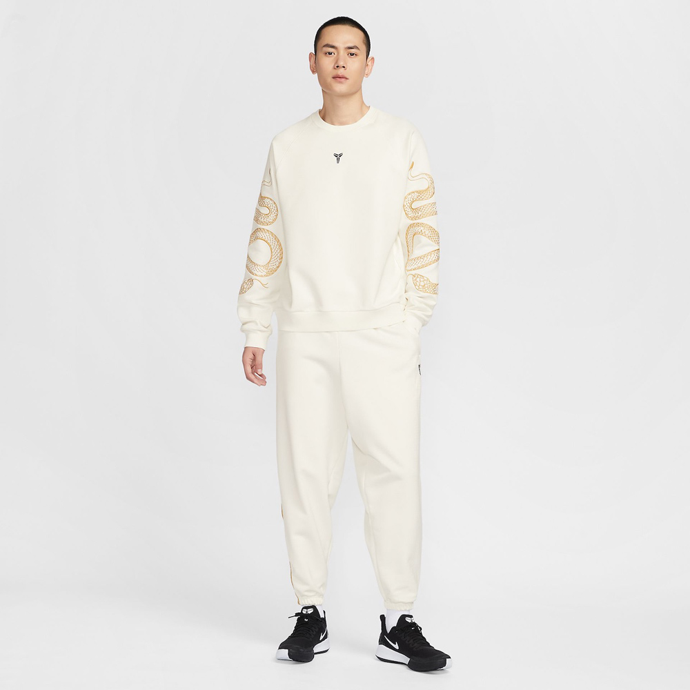 圆领卫衣则在双侧袖子注入曼巴蛇金色刺绣,同时蛇纹的篮球短裤也是日常出镜率较高的单品。