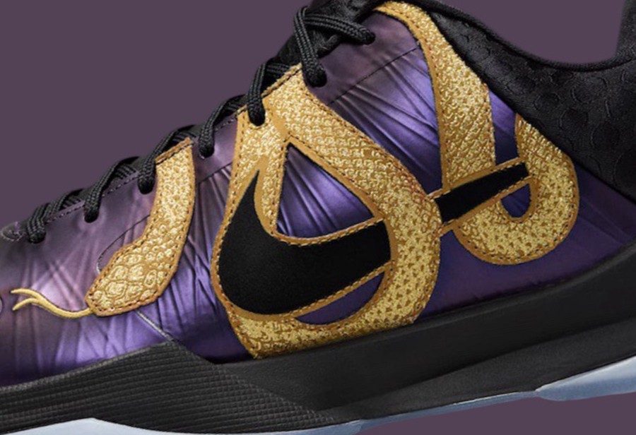 球鞋本身相信大家已经很熟悉了,略带幻彩的紫色鞋身注入华丽金蛇环绕。