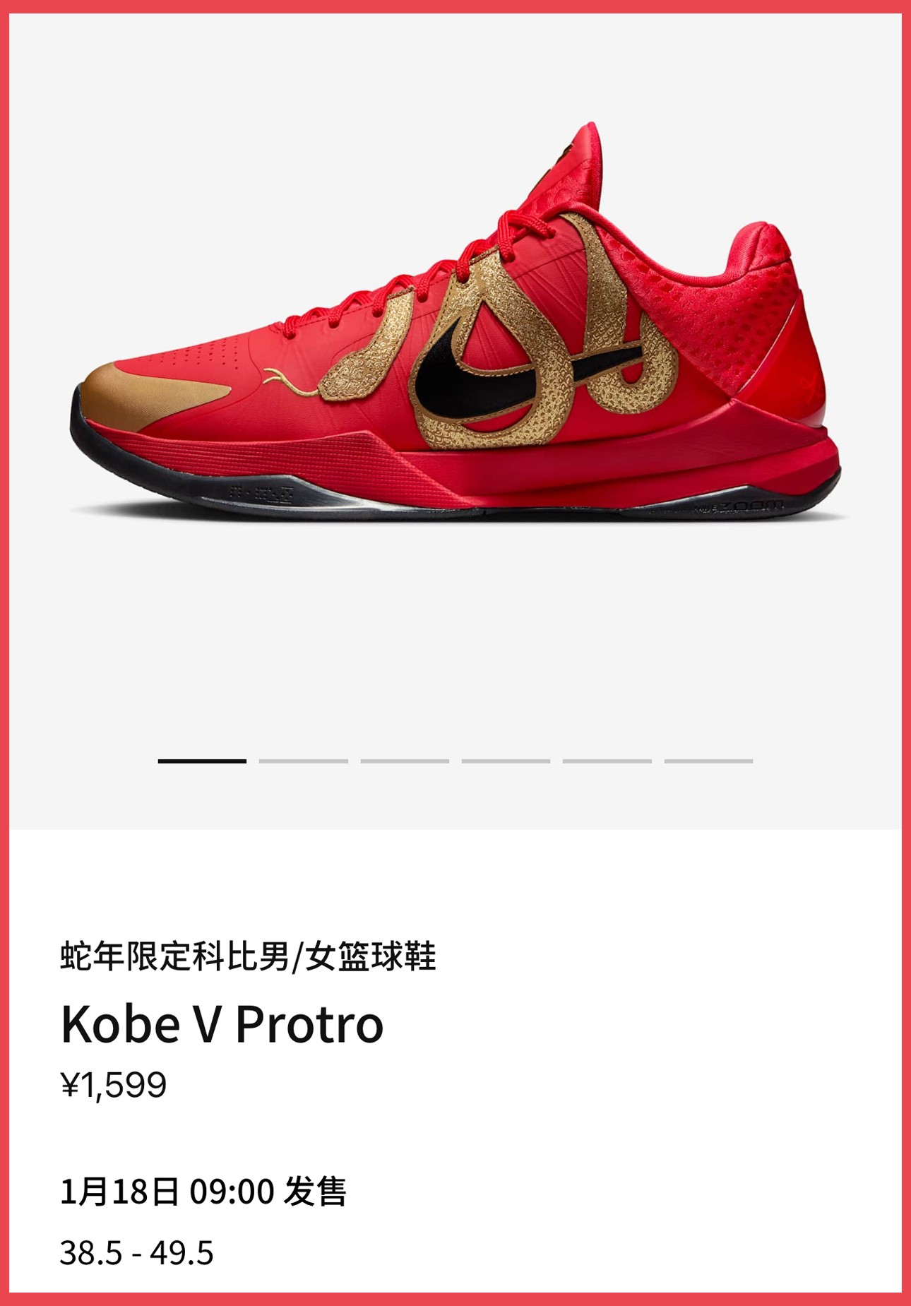 作为 Nike「曼巴之年」企划的重头戏,继紫蛇 Nike Kobe 5 Protro 在昨天率先登场后,关注度更高的红蛇也正式现身国区 SNKRS 预告,亮出了确切登场日期!